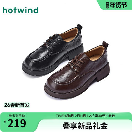 热风厚底乐福鞋女鞋2026春季新款英伦风配裙子小皮鞋百搭粗跟单鞋