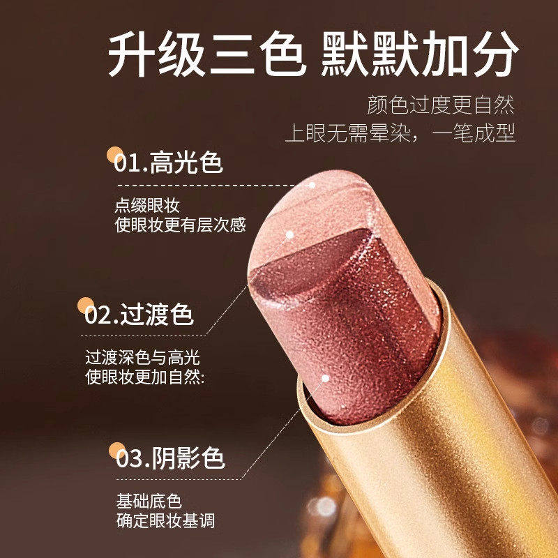 一笔成型渐变懒人三色眼影棒哑光细闪珠光高光眼影笔新人初学者女