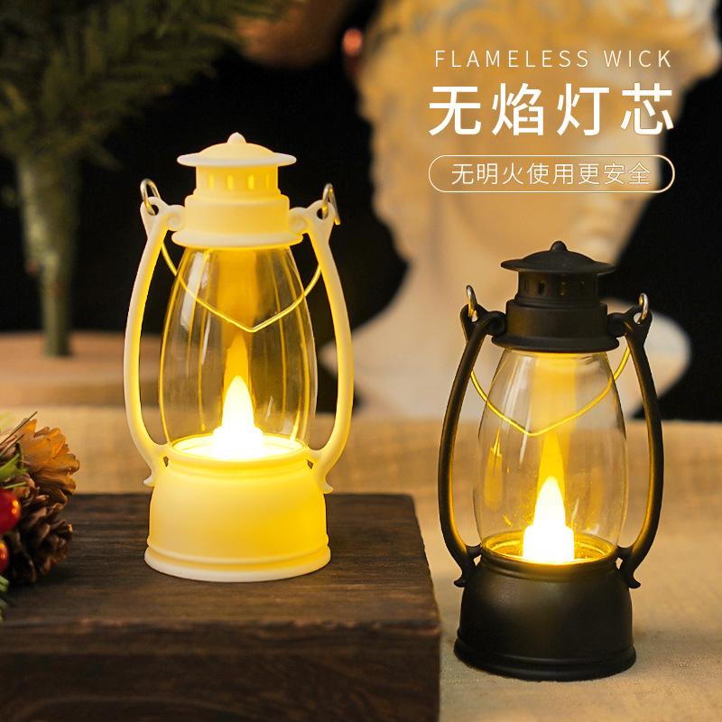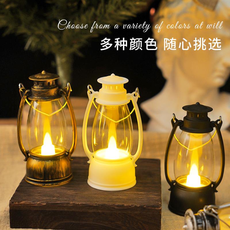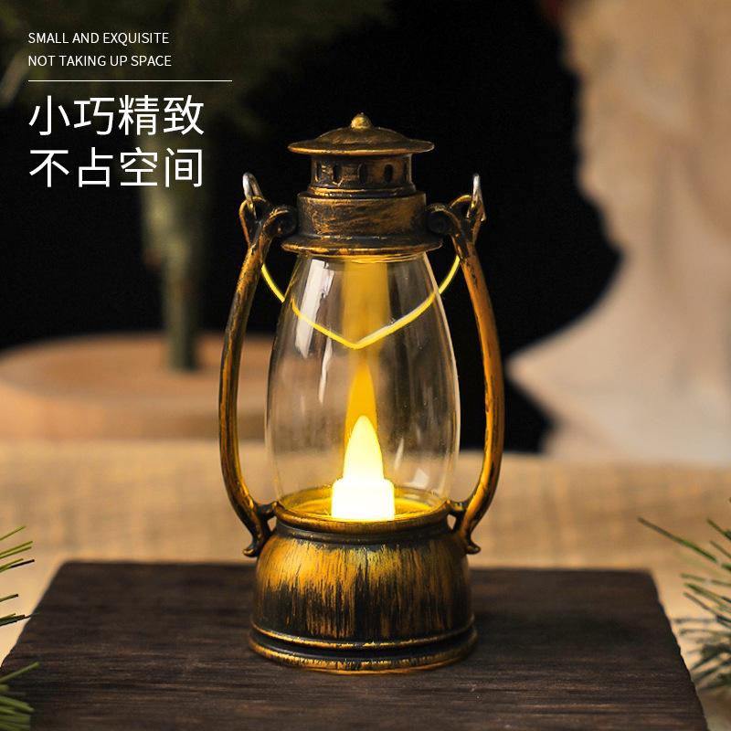 复古迷你小提灯led电子蜡烛灯手提小夜灯创意煤油灯装饰风灯摆件