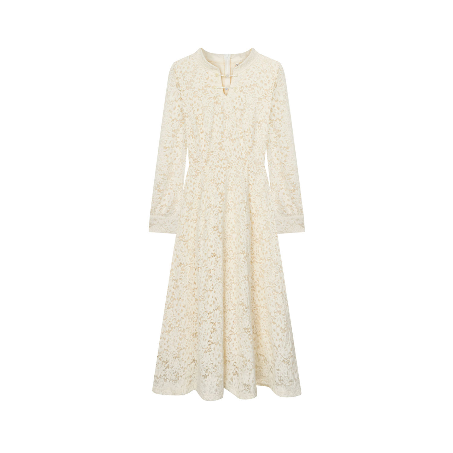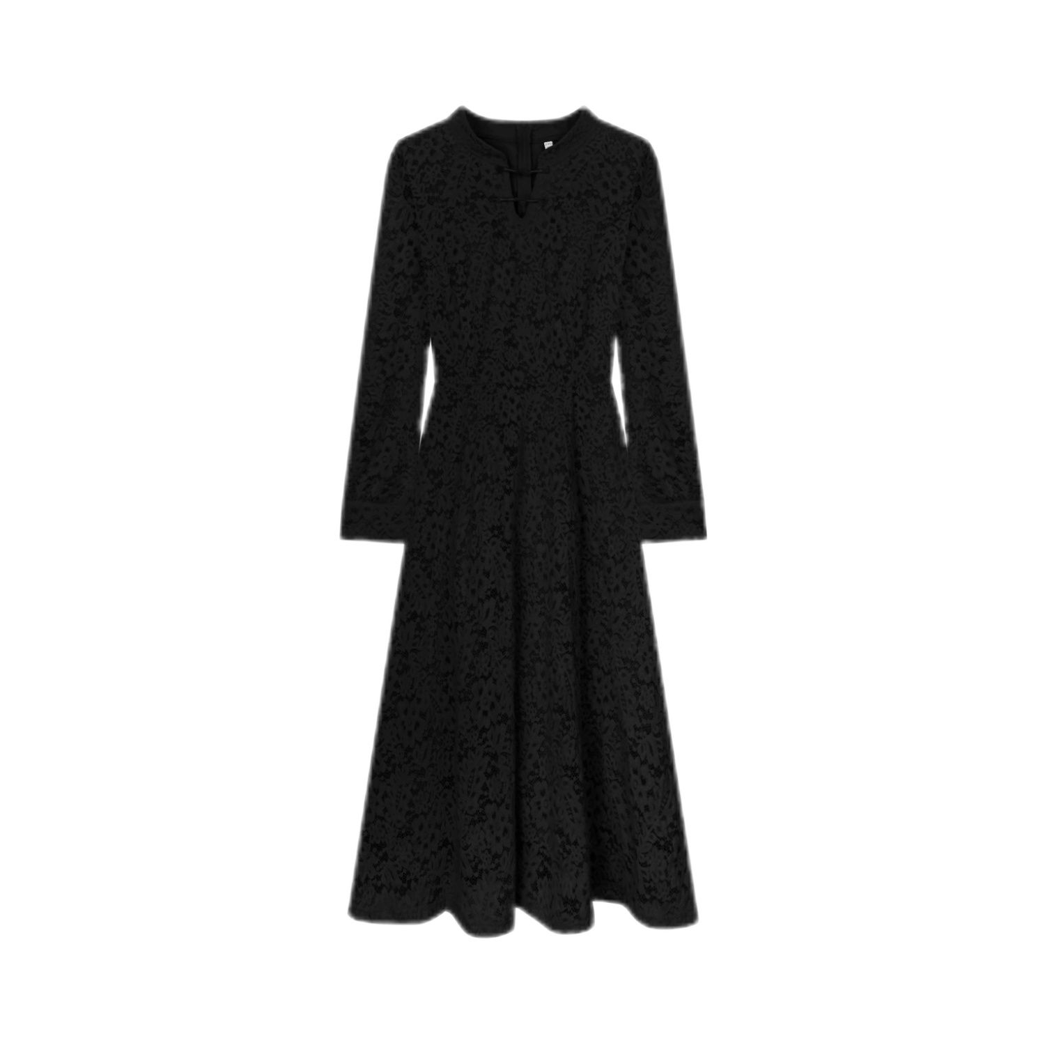 青倾家【春庭雪】秋冬新中式加绒加厚内搭中长裙国风蕾丝连衣裙