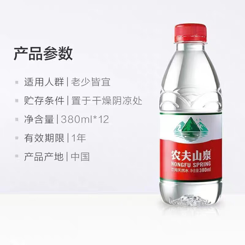 农夫山泉饮用天然水380ml*24小瓶饮用纯净水民宿单位酒店非矿泉水
