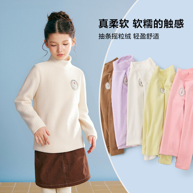 笛莎官方旗舰童装女童摇粒绒长袖t恤冬季新款儿童时尚保暖打底衣