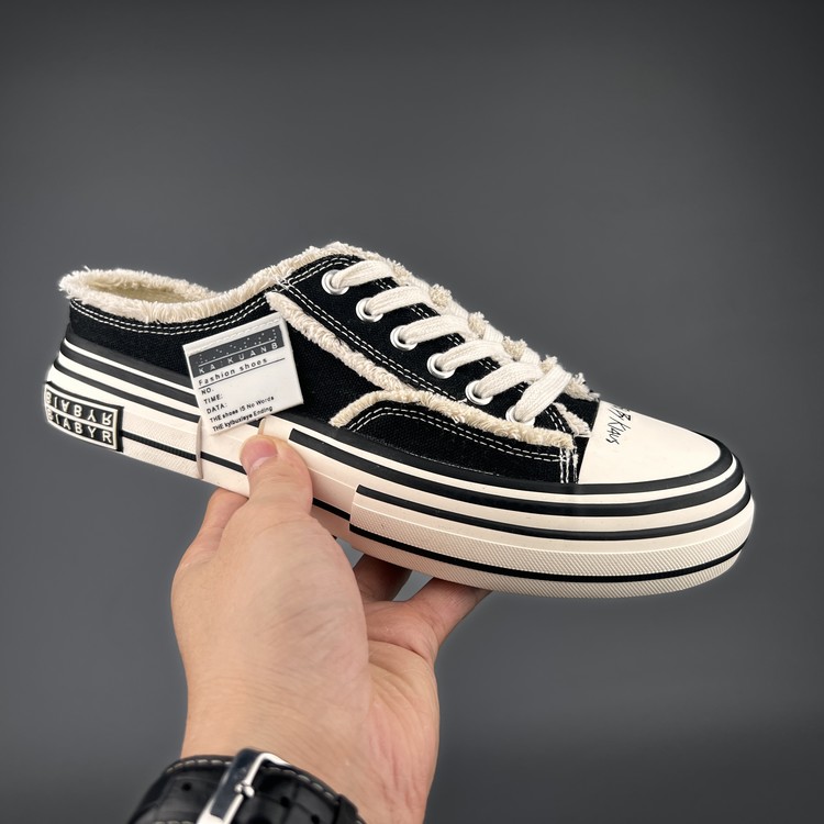 超值捡漏外贸夏轻便一脚蹬帆布透气半拖鞋男包头厚底百搭休闲男鞋