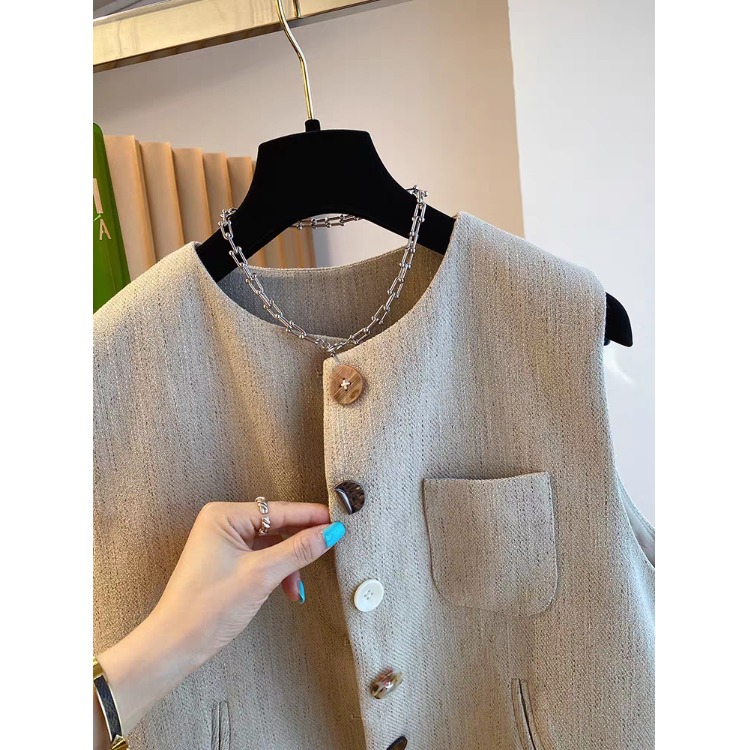 高端老钱风亚麻西装马甲女秋装洋气时髦宽松外穿无袖马夹背心上衣