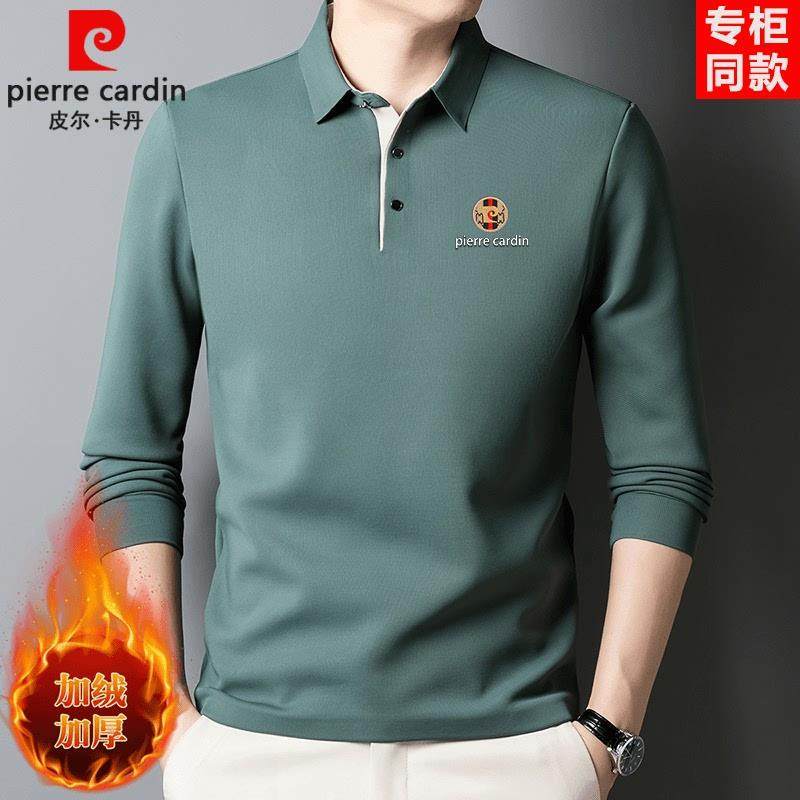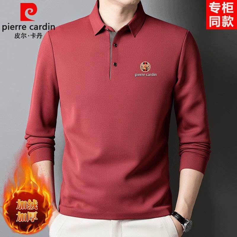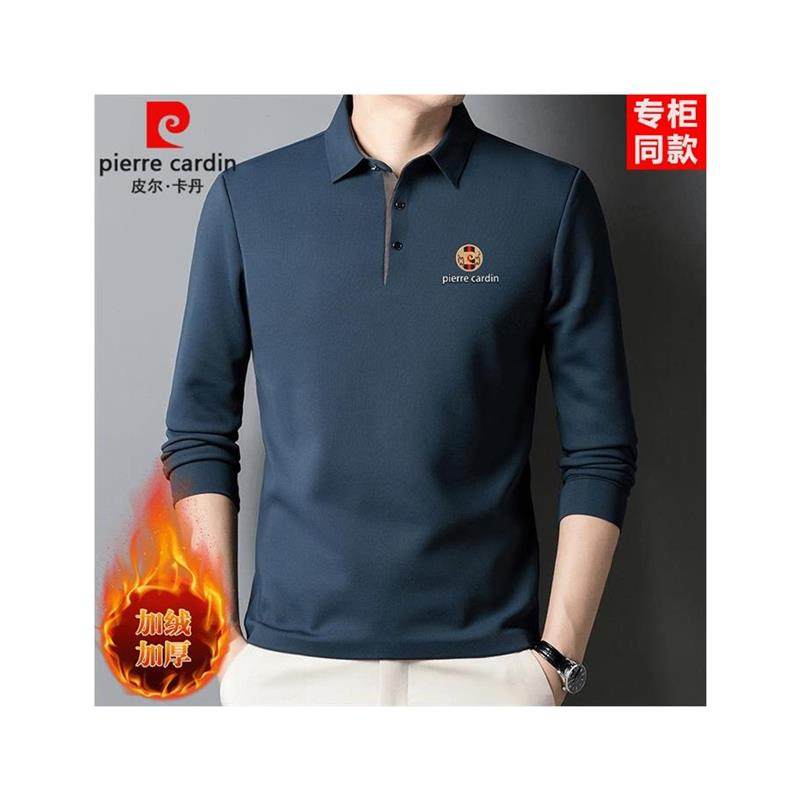 皮尔卡丹桑蚕丝加绒长袖T恤2024冬季加厚保暖卫衣打底真丝POLO衫