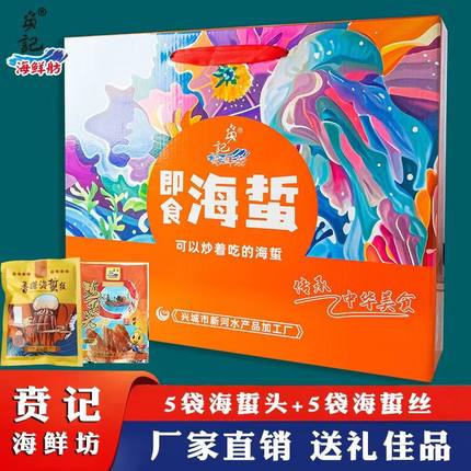 兴城特产新河水产海蜇礼盒内200g*10袋即食海蜇头海蜇丝带调料包