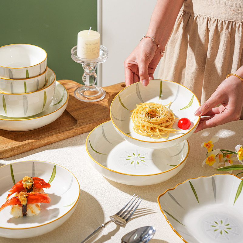 舍里清新盘子菜盘2025新款陶瓷碗碟餐具釉下彩餐盘高级感碟子深盘