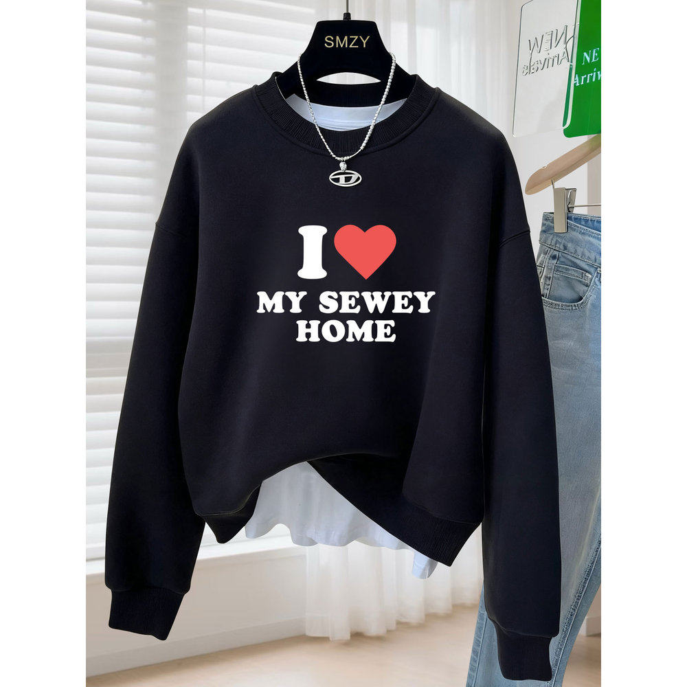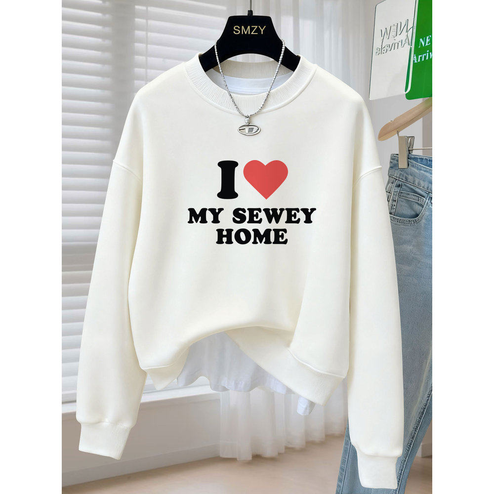 字母爱心圆领卫衣女2025春秋冬宽松慵懒风加绒加厚长袖套头上衣潮