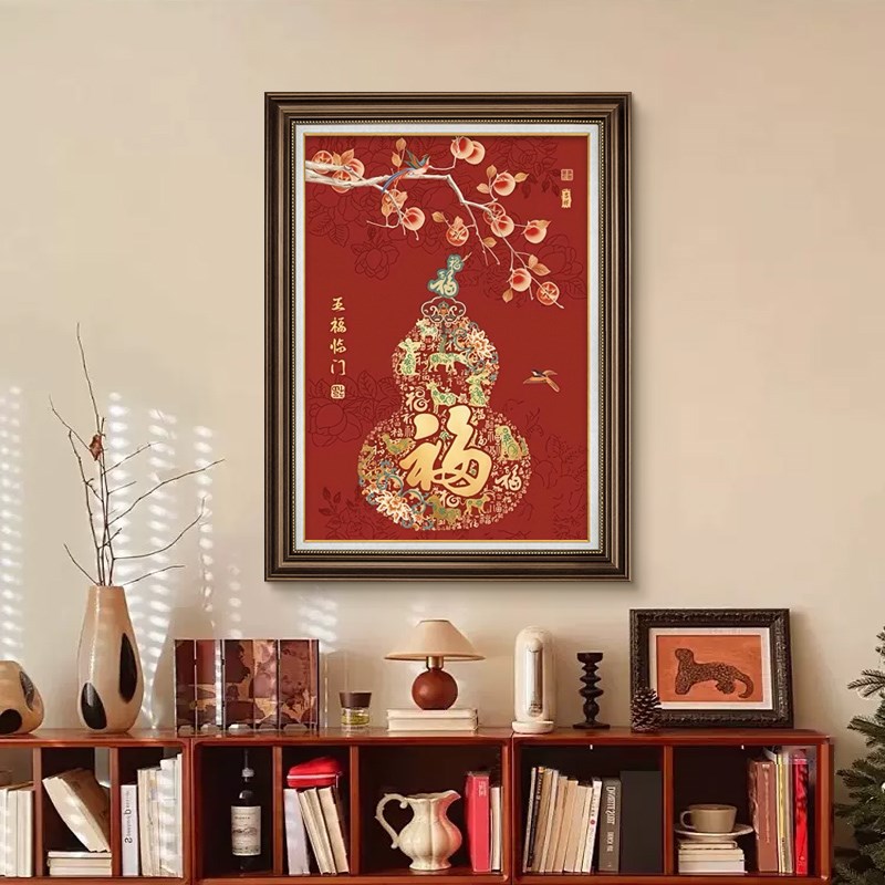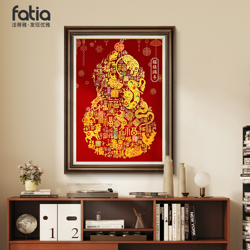 蛇年美式玄关装饰画福禄满年挂画走廊过道高级感客厅生肖福字壁画