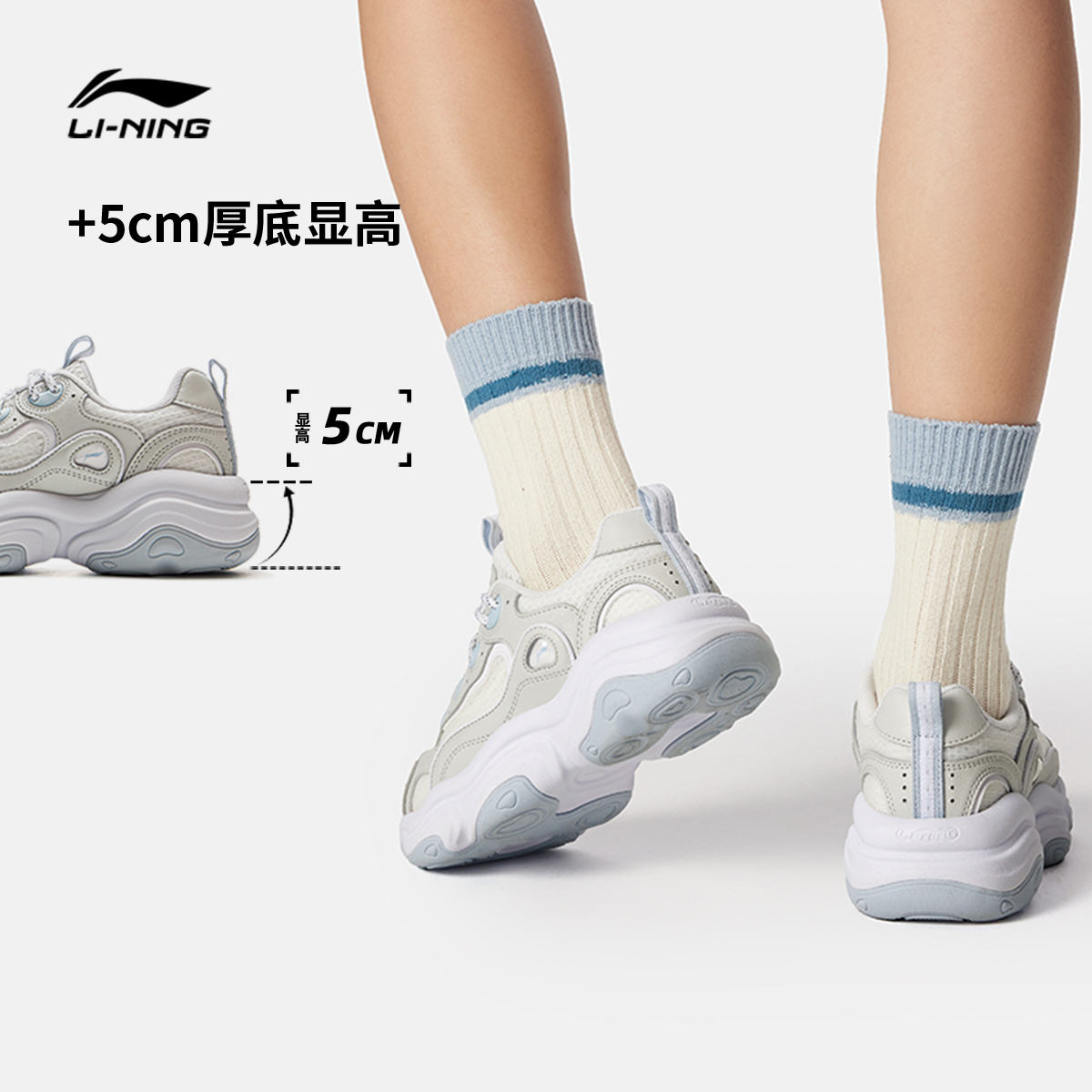 李宁蜜糖丨休闲鞋女鞋2025新款秋季复古老爹鞋厚底增高低帮运动鞋
