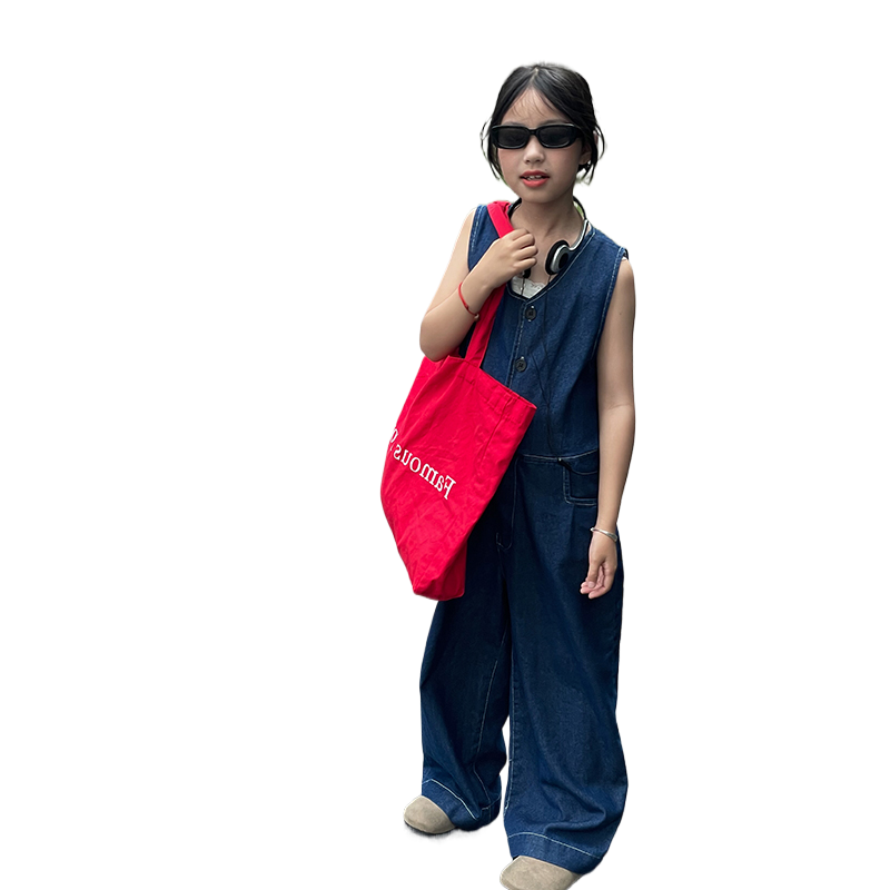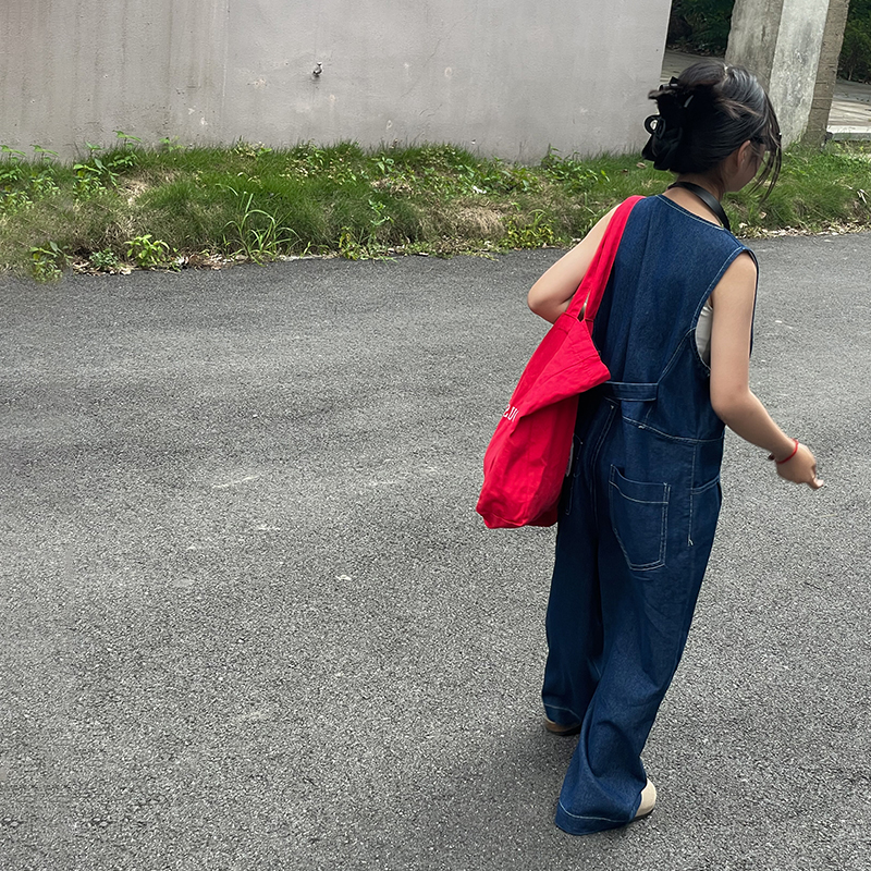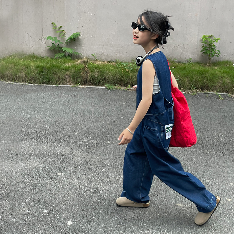 女童牛仔背带裤洋气百搭阔腿裤