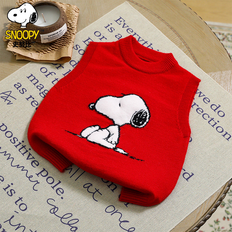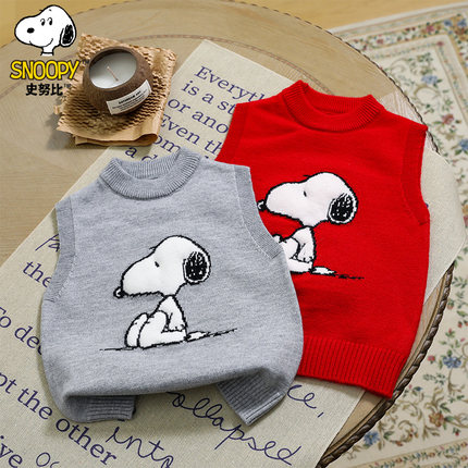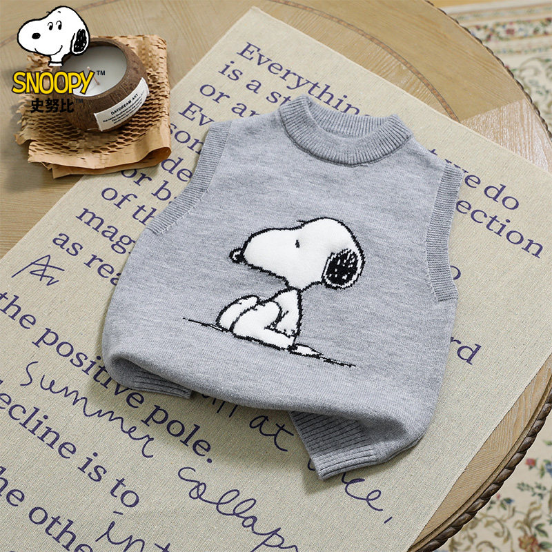 史努比儿童秋冬针织毛衣马甲无袖百搭潮流纯色冬天内搭保暖上衣