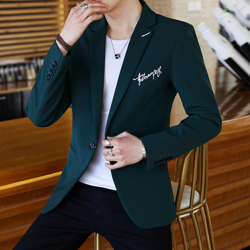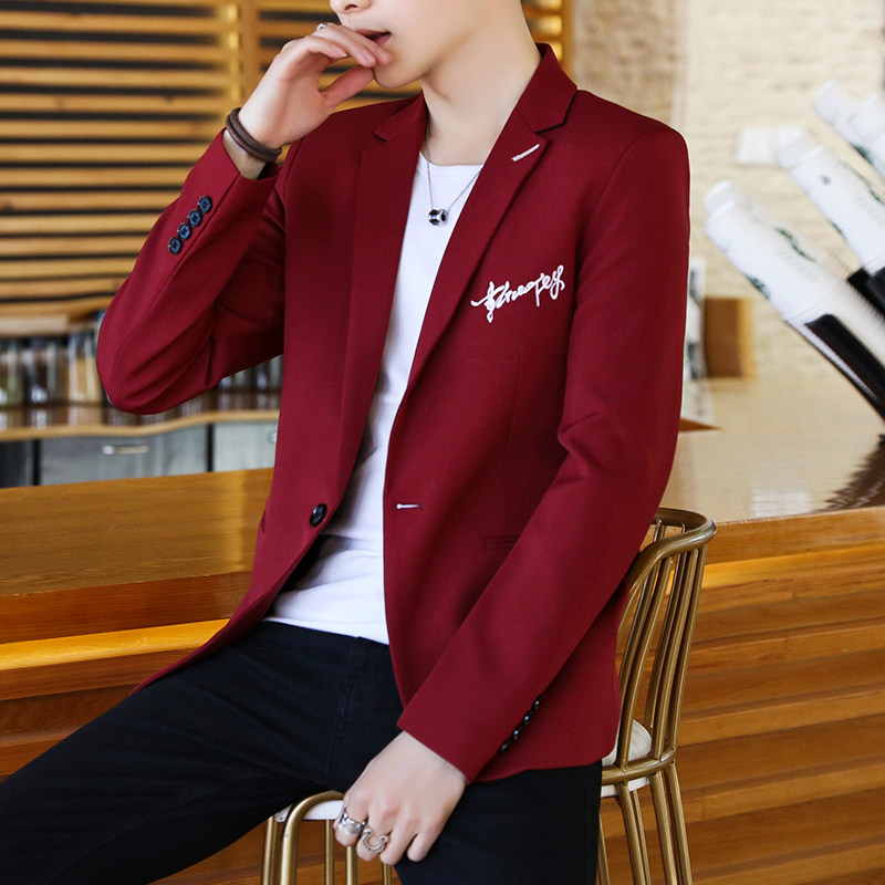 男士修身加绒加厚西服秋冬季青年韩版潮流单西外套学生帅气小西装