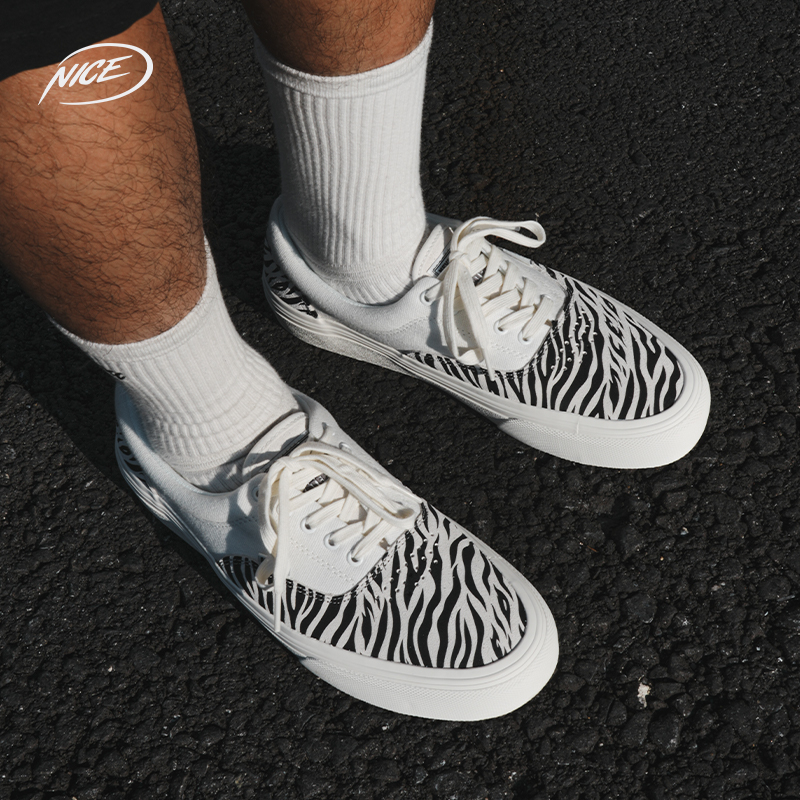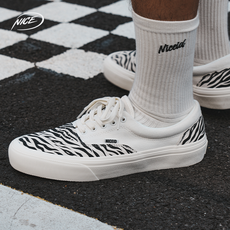 NICEID NICE斑马纹运动帆布鞋翻毛皮低帮潮流休闲男女软弹耐磨