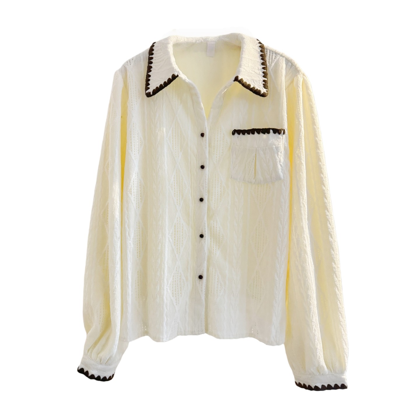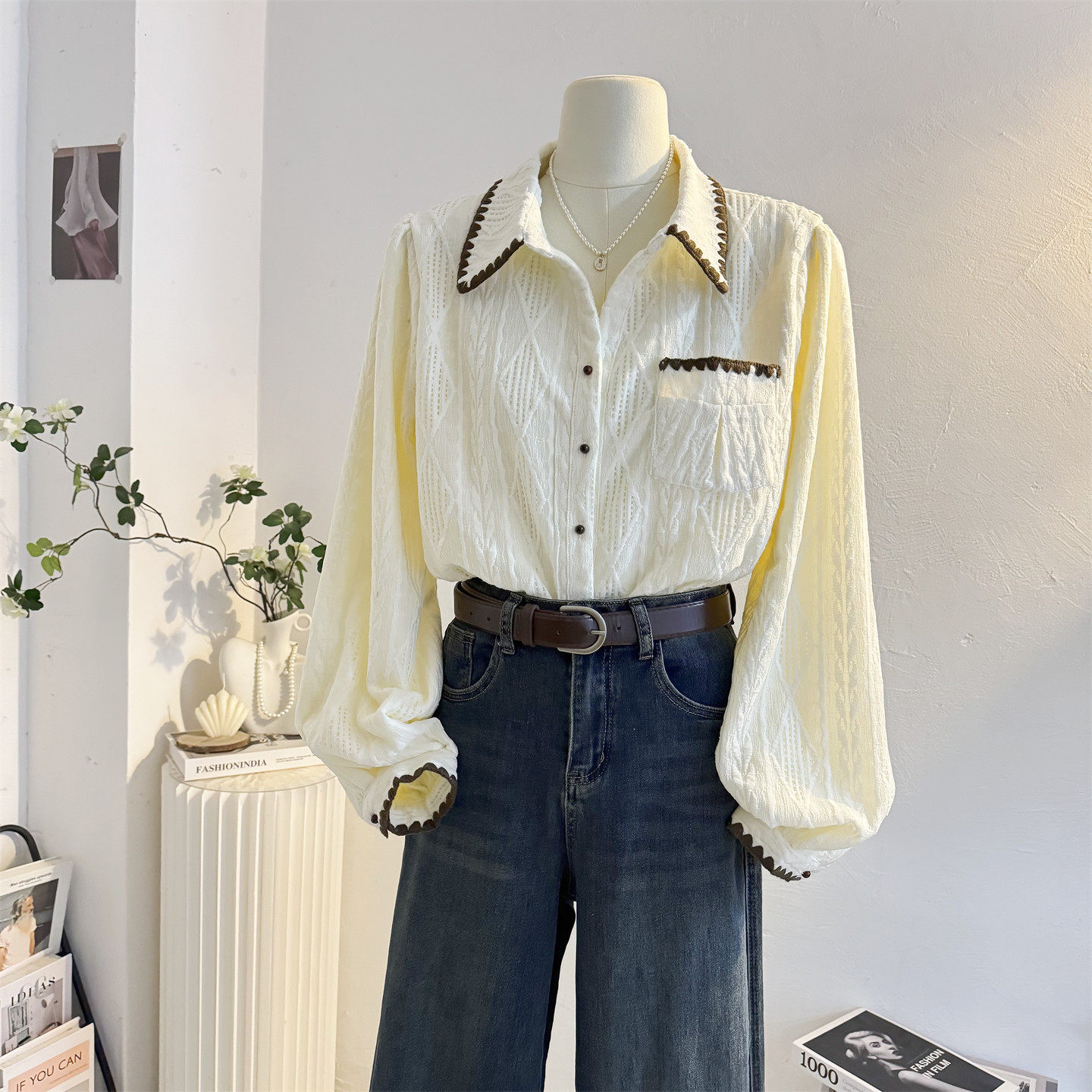 宽松加绒加厚翻领蕾丝长袖衬衫女