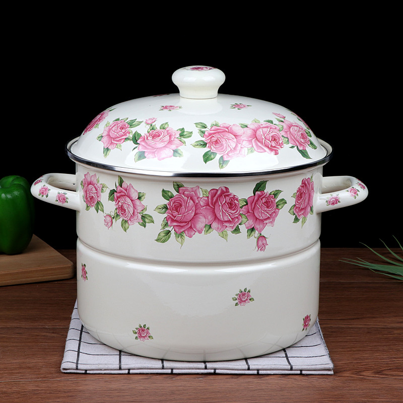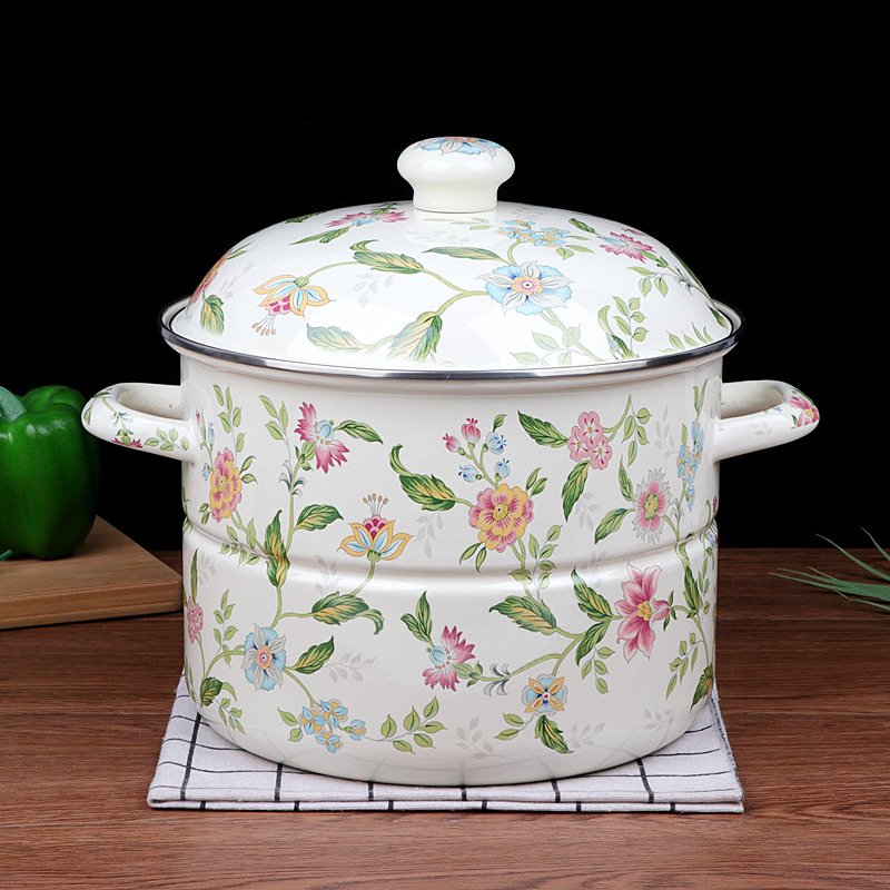 包邮珐琅搪瓷蒸锅搪瓷高锅搪瓷锅搪瓷加深锅搪瓷蒸汤锅煲汤锅炖锅