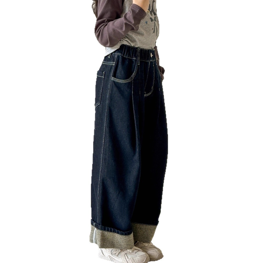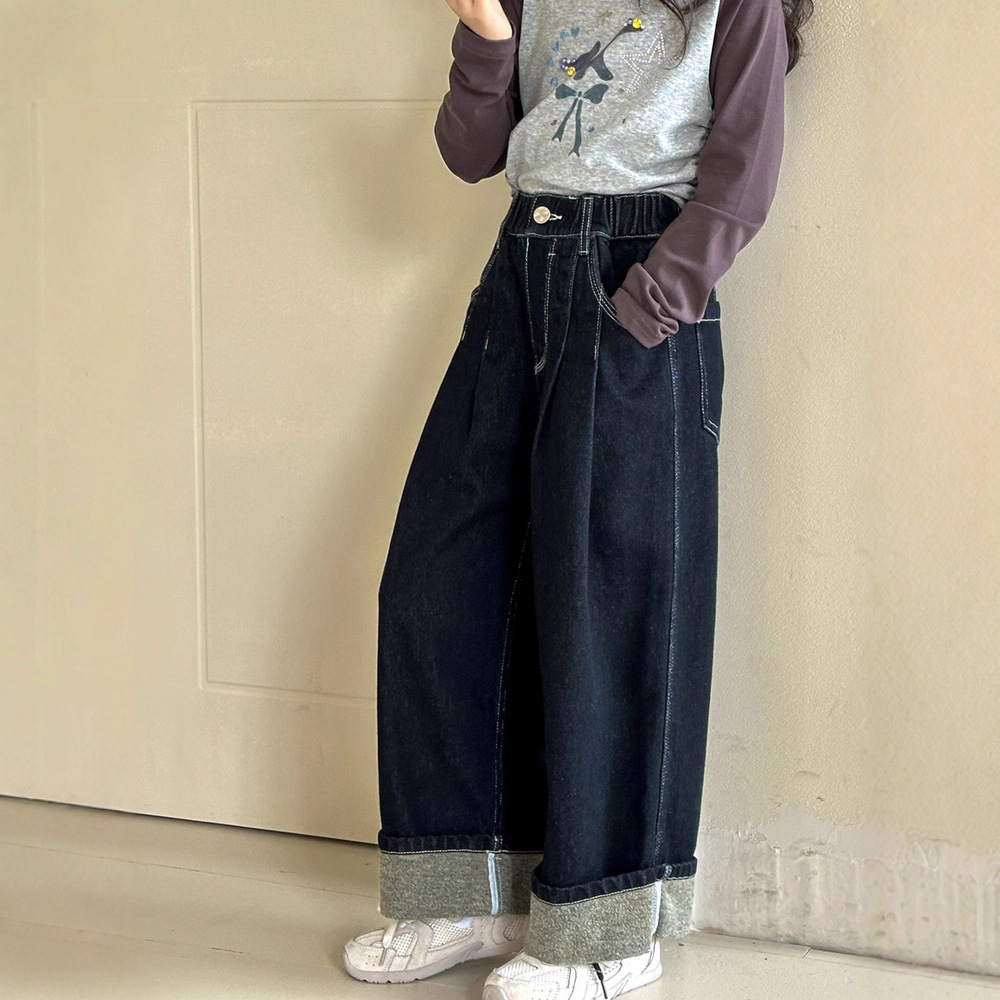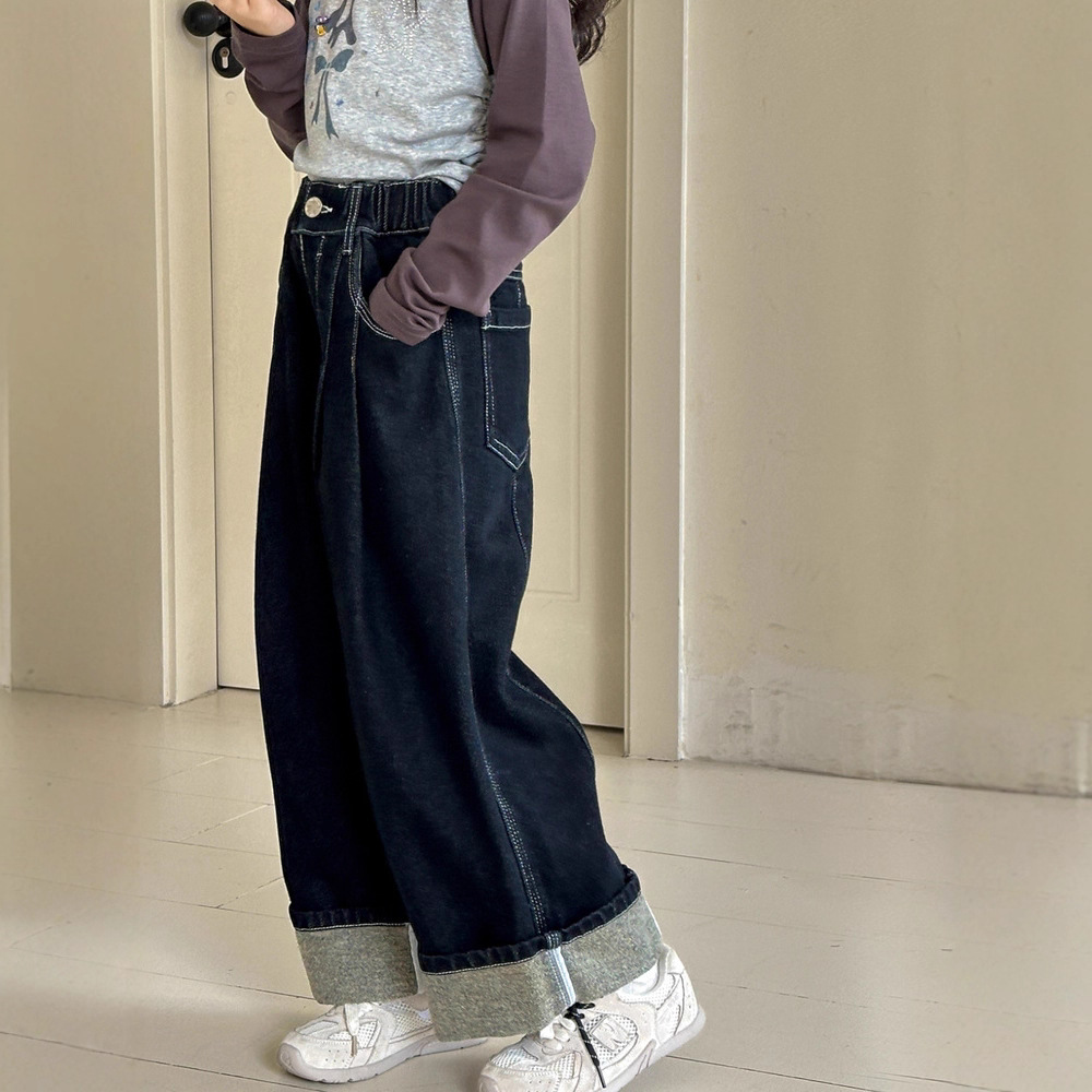 女童裤子春秋2025新款亲子装儿童秋装洋气休闲款翻边牛仔裤