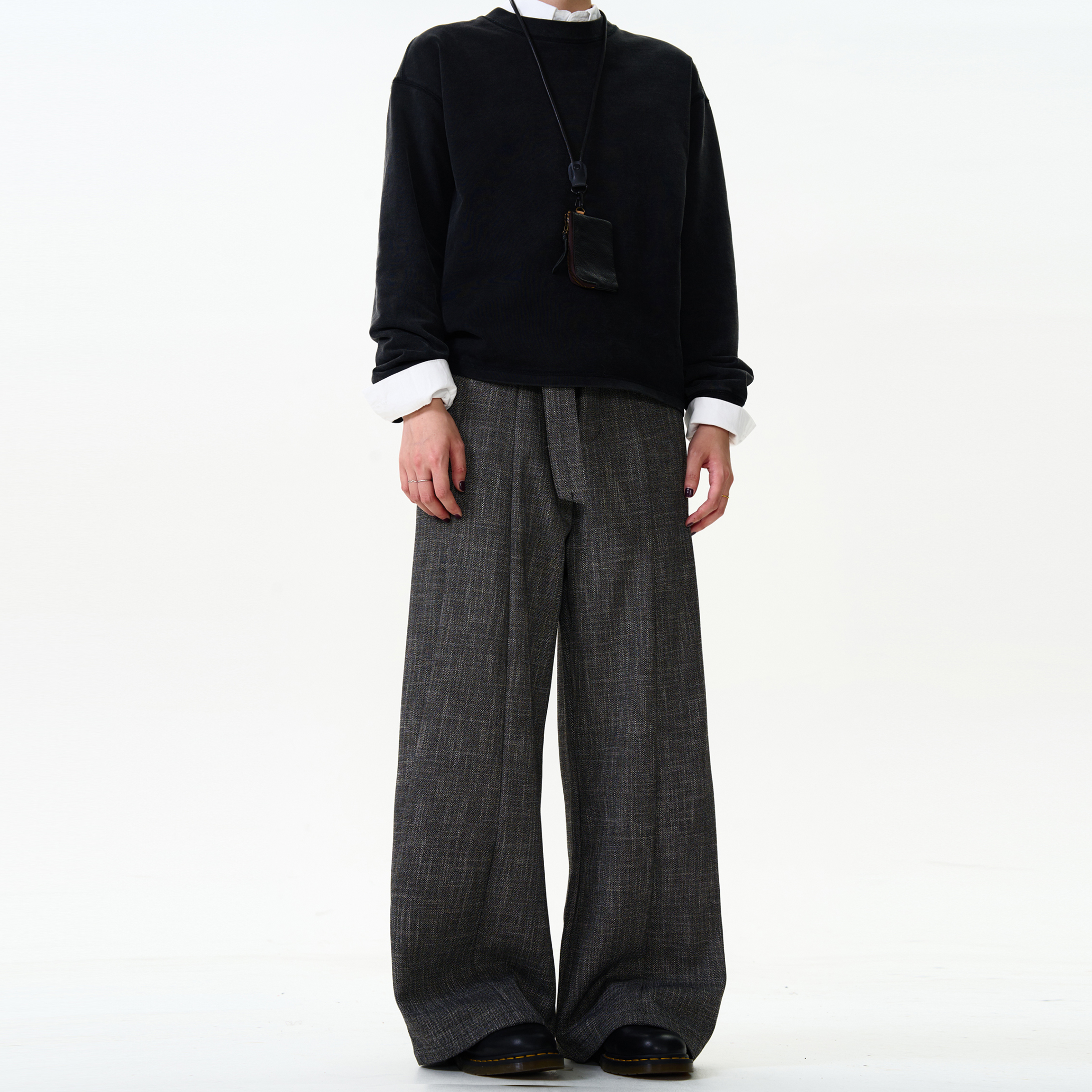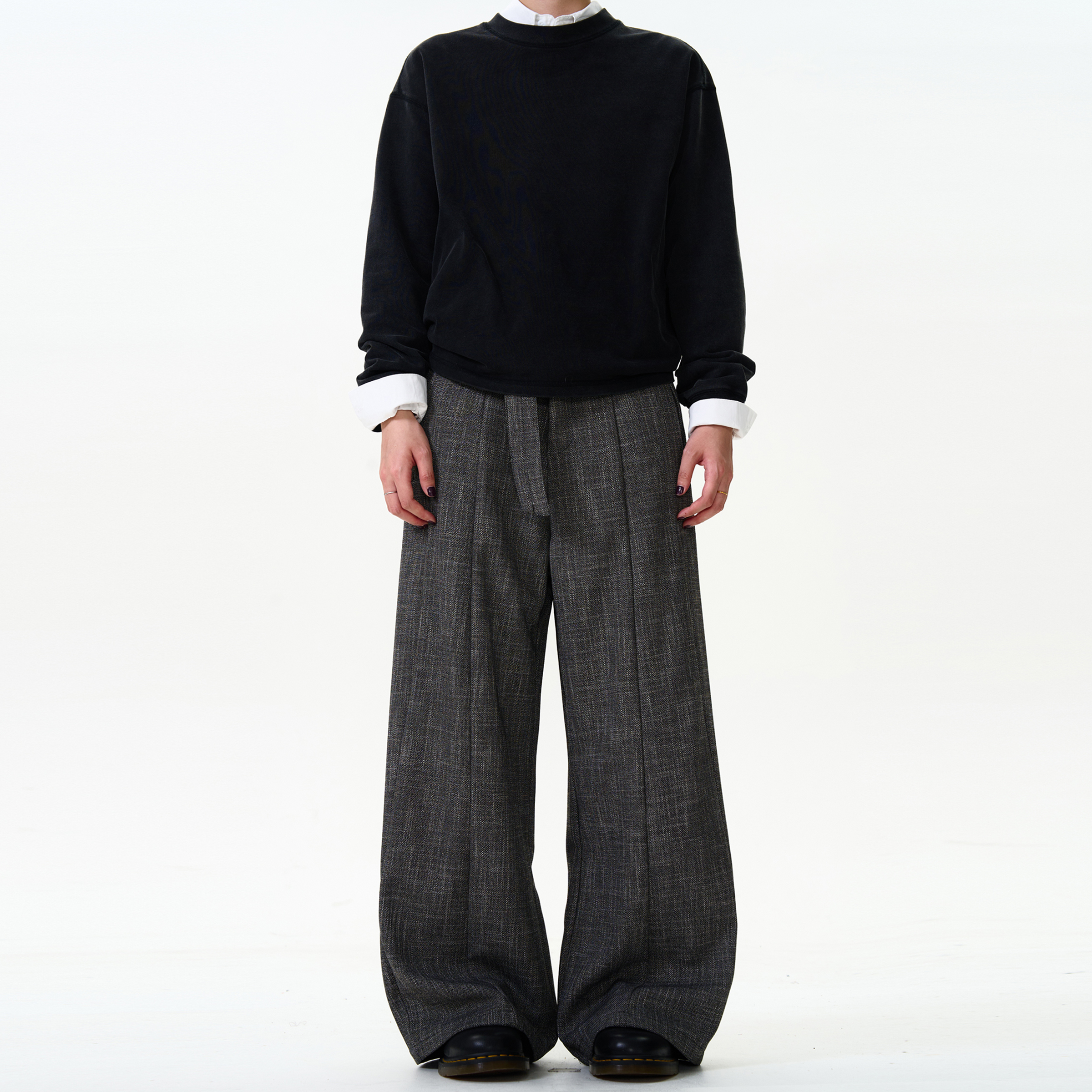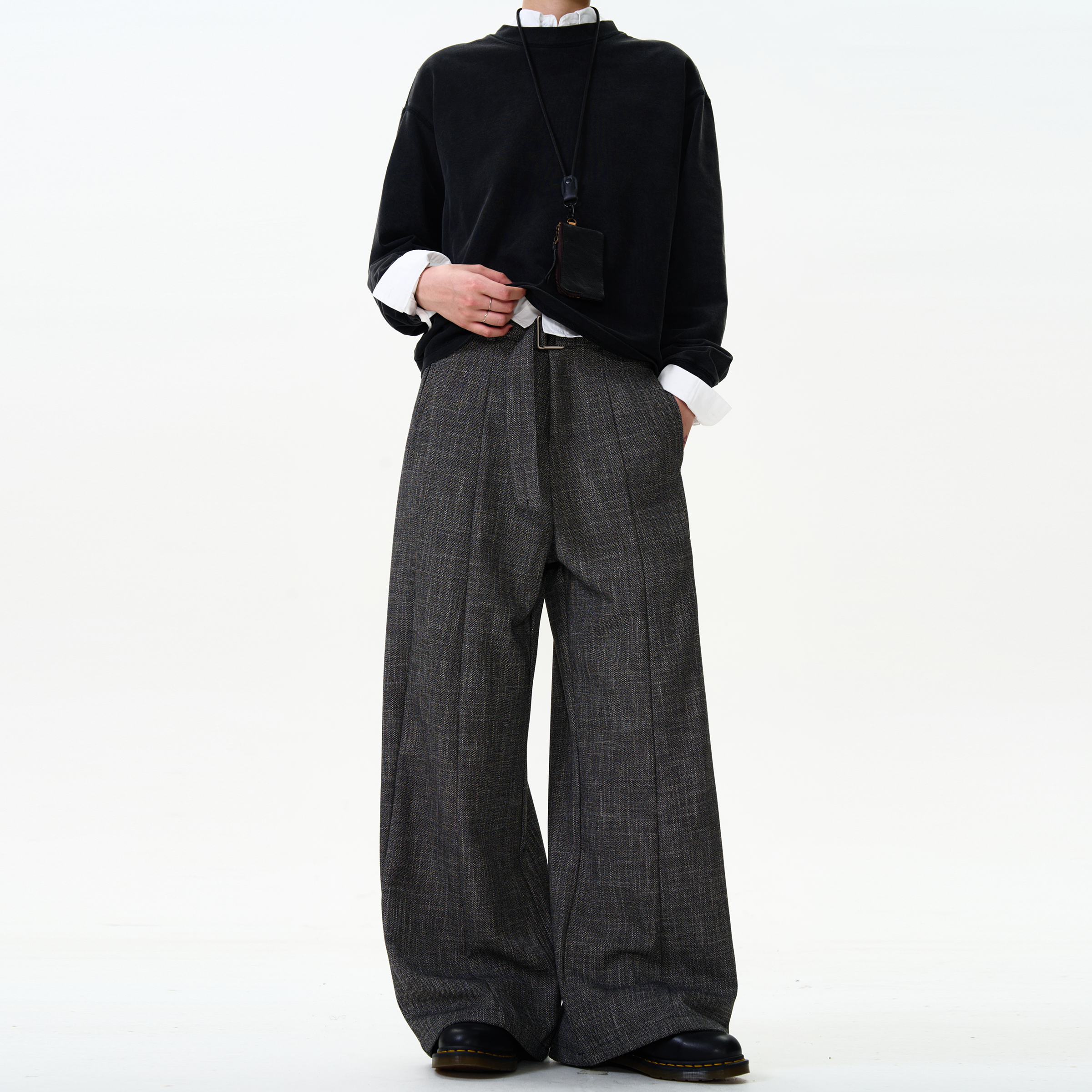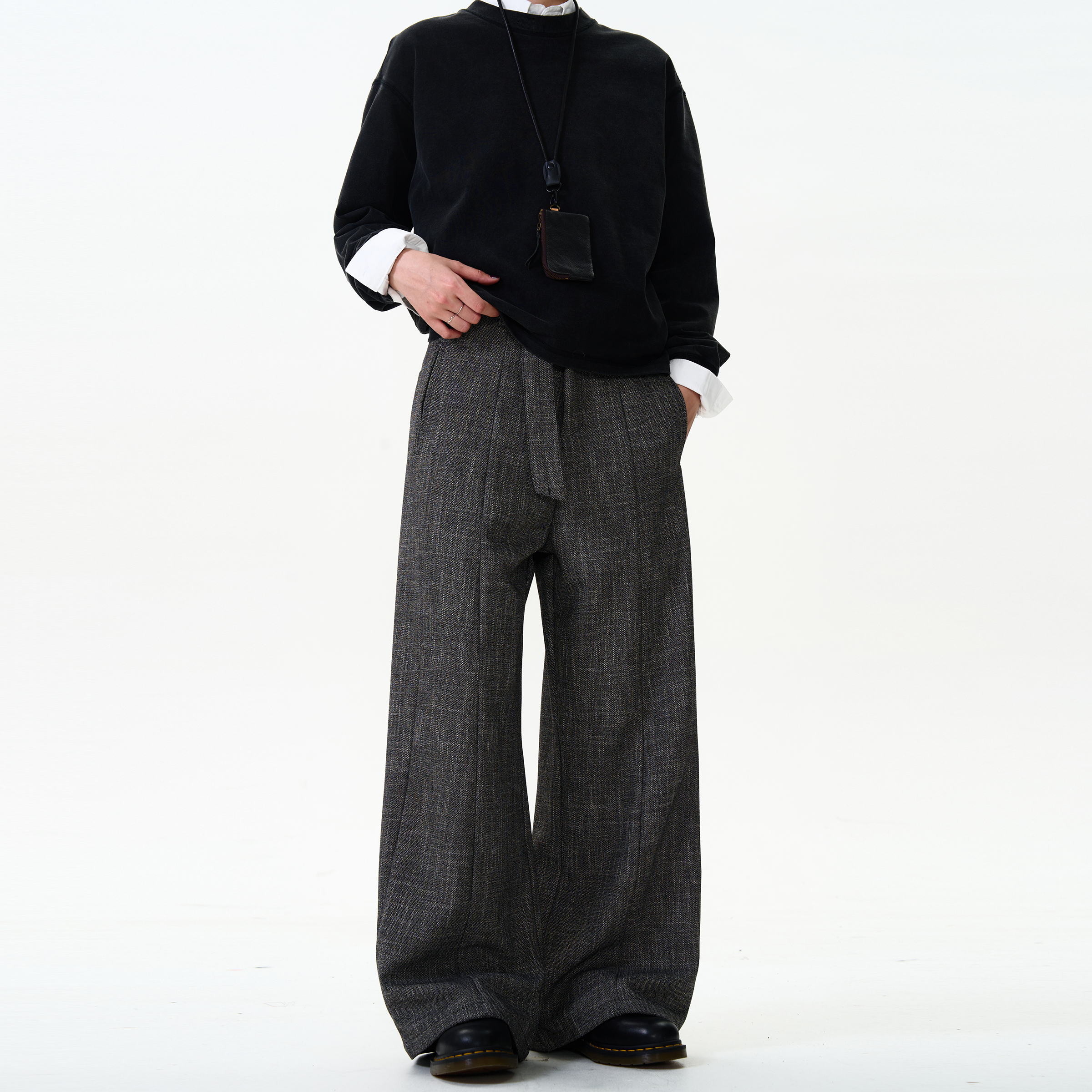 MADWITCH复古老钱风垂感休闲西裤男女宽松花灰纹理高级感直筒裤子