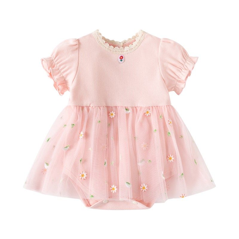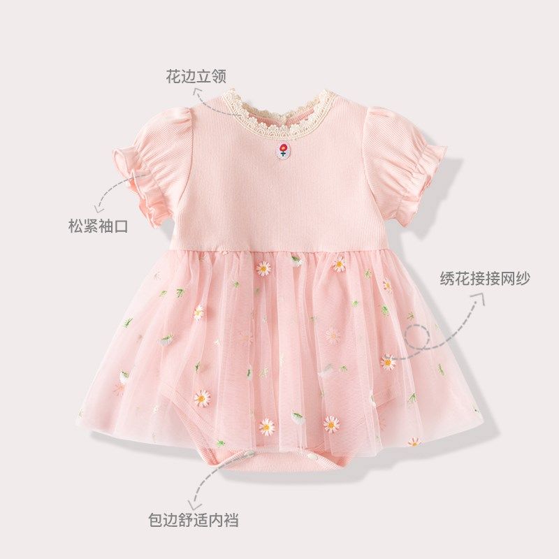 女宝宝夏装新款小碎花婴儿包屁哈裙满月百天衣服周岁女宝公主纱裙