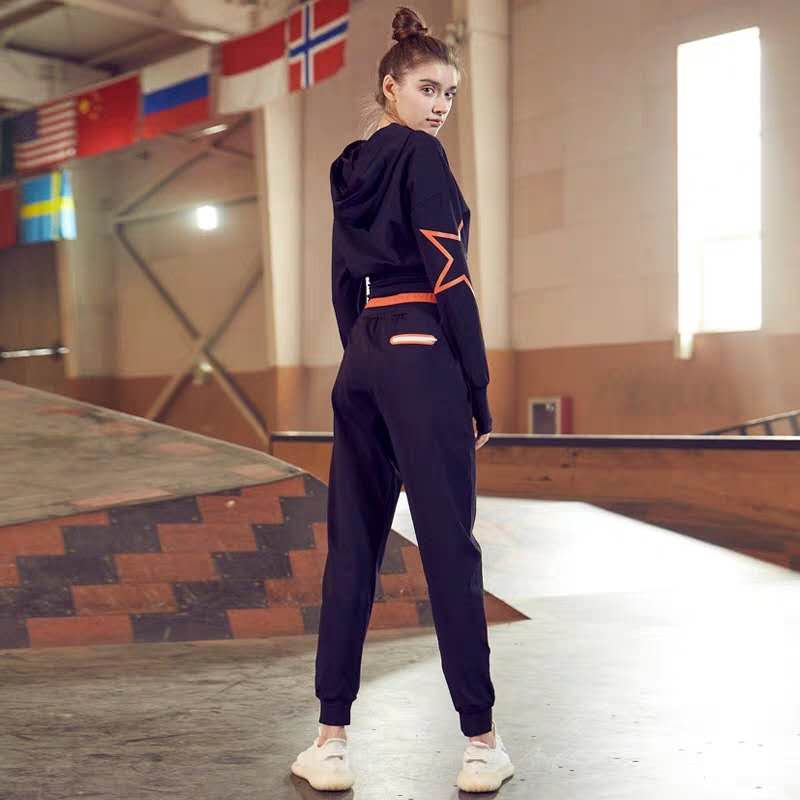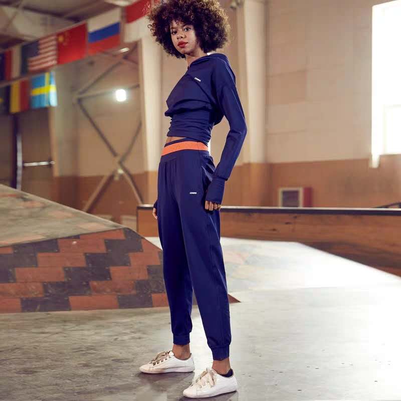 gymna复古春秋运动套装显瘦两件套长袖宽松长裤跑步速干瑜伽服女