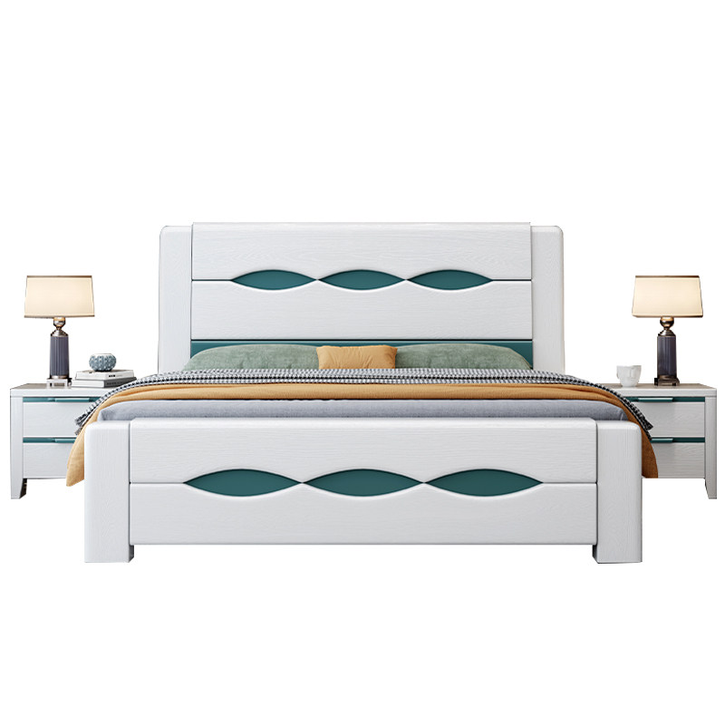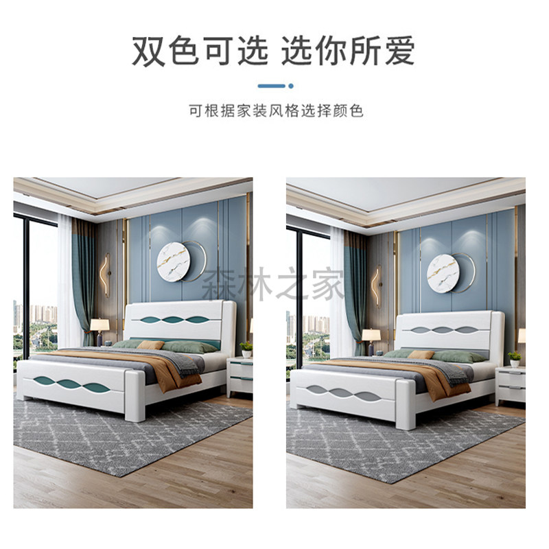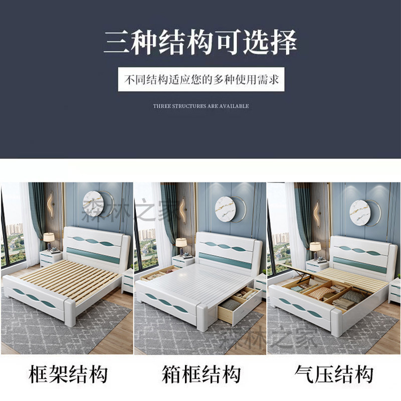 实木床现代简约双人床1.8米压纹主卧室白色储物床1.5高箱床小户型