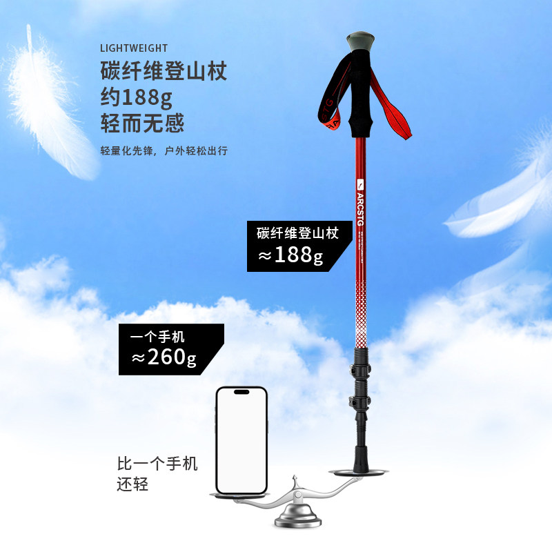 ARCSTG碳纤维登山杖外锁定伸缩款