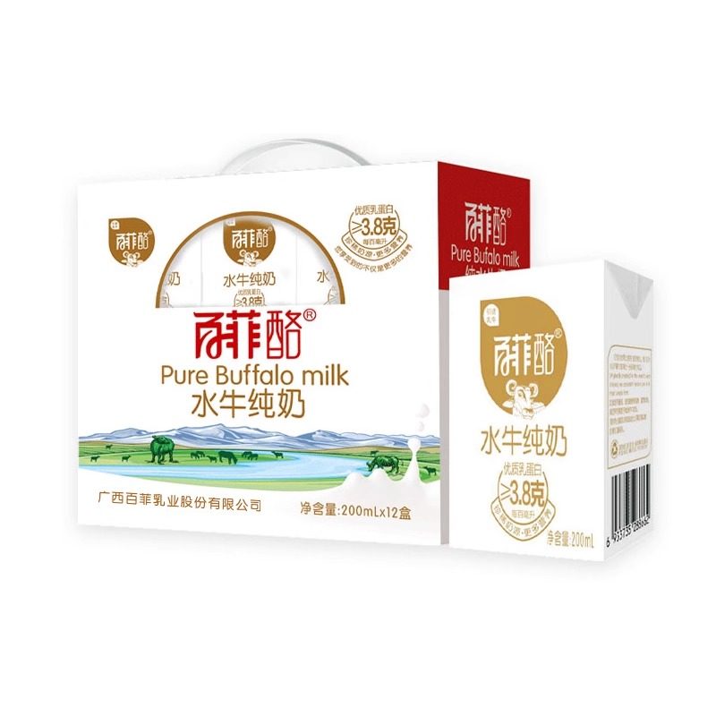 百菲酪水牛奶整箱200ml*12盒广西百非洛白菲骆纯牛奶新鲜甜早餐奶