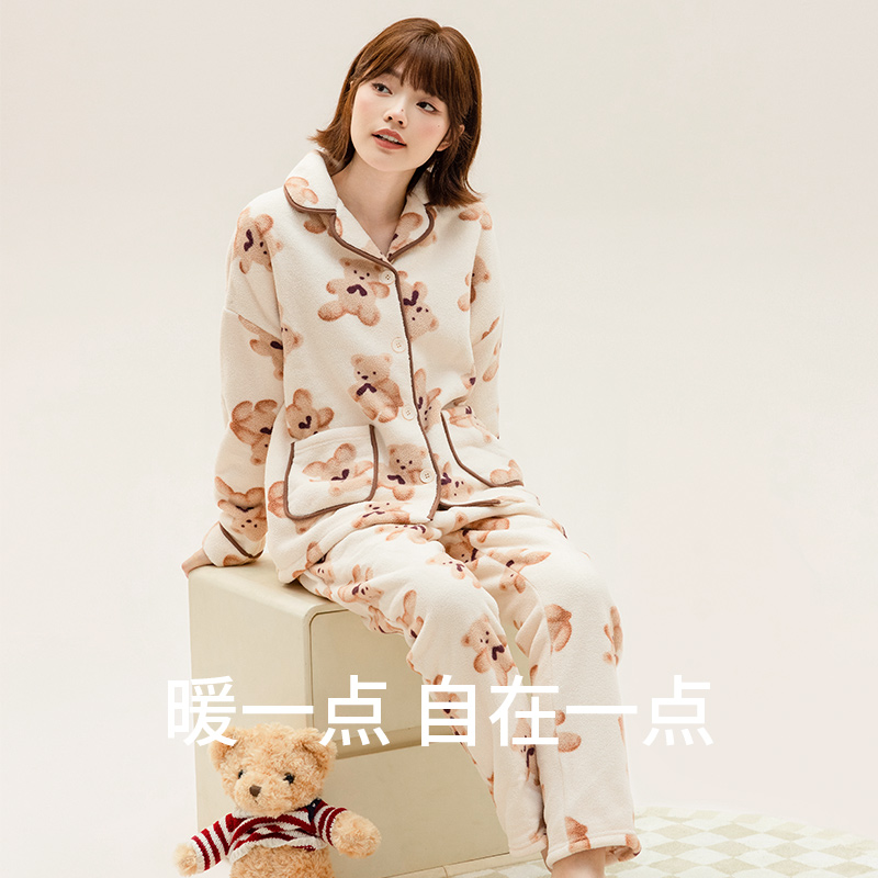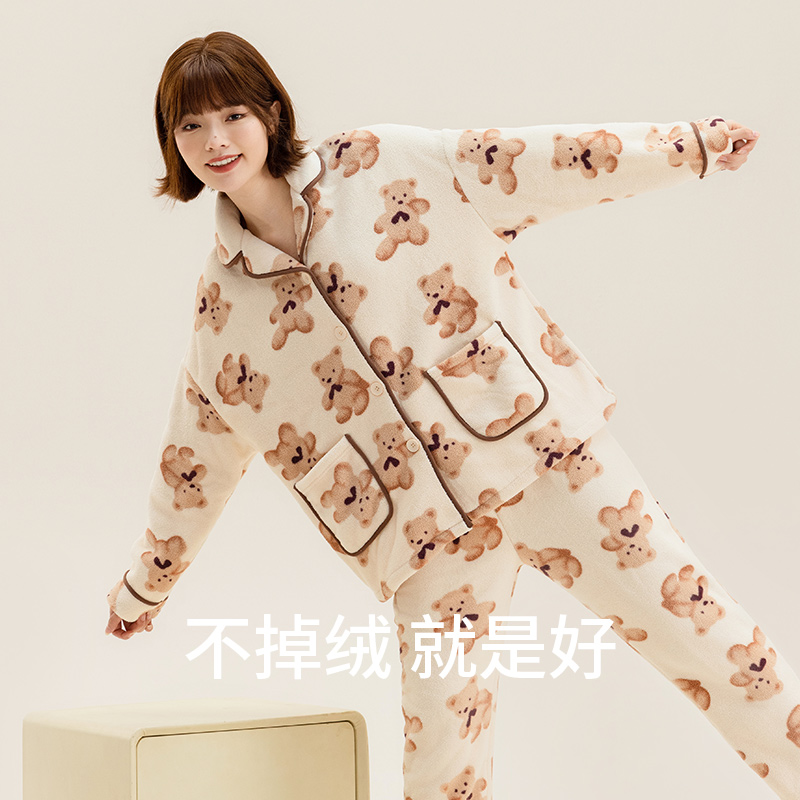 秋鹿米粒绒睡衣女2024秋冬新款可爱卡通珊瑚绒高级感可外穿家居服