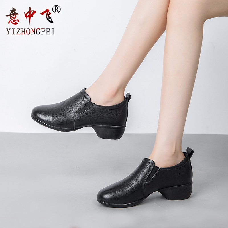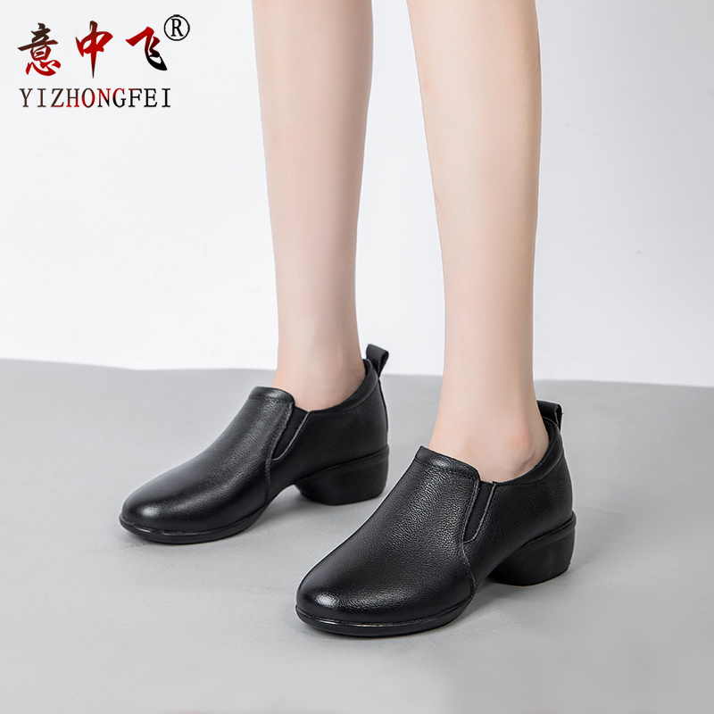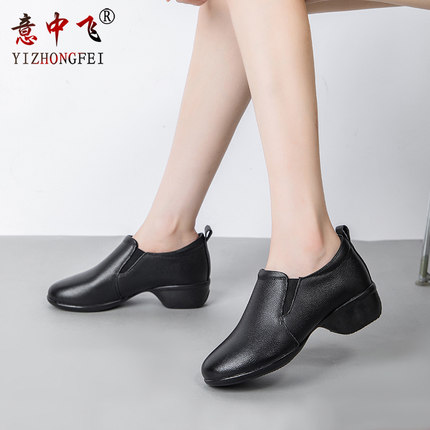 意中飞2024春秋新款一脚蹬舞蹈鞋女广场舞鞋真皮软底妈妈跳舞鞋子