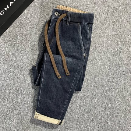 松紧腰牛仔裤男九分秋冬爆款潮流修身百搭弹力休闲男士抽绳裤子男
