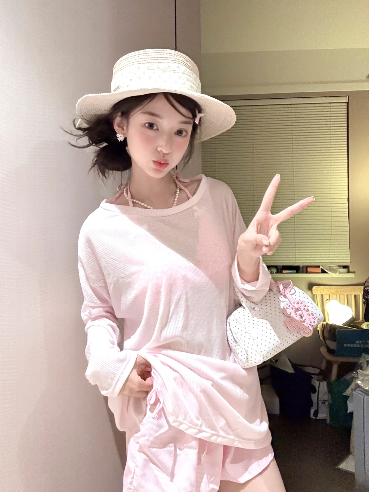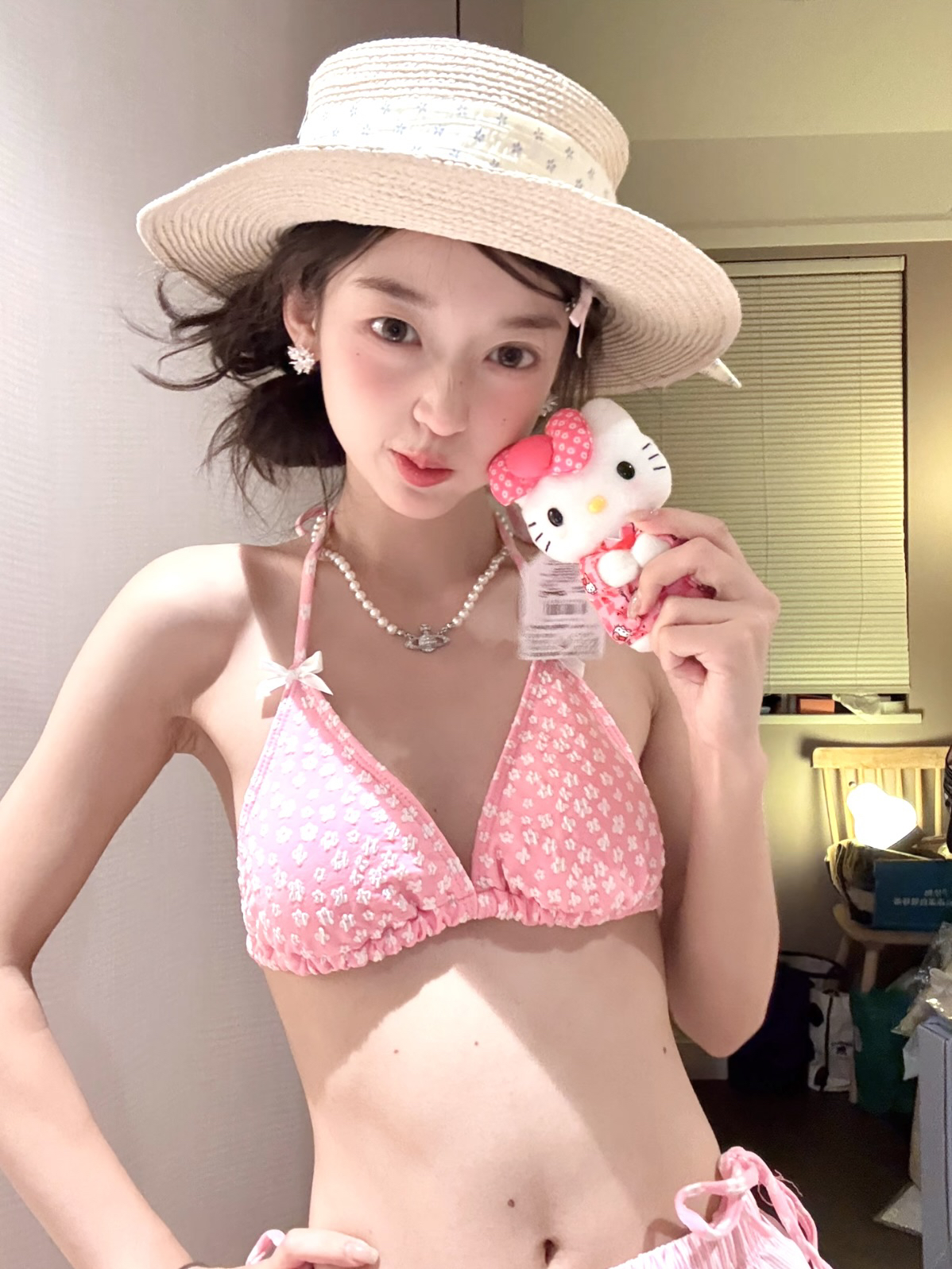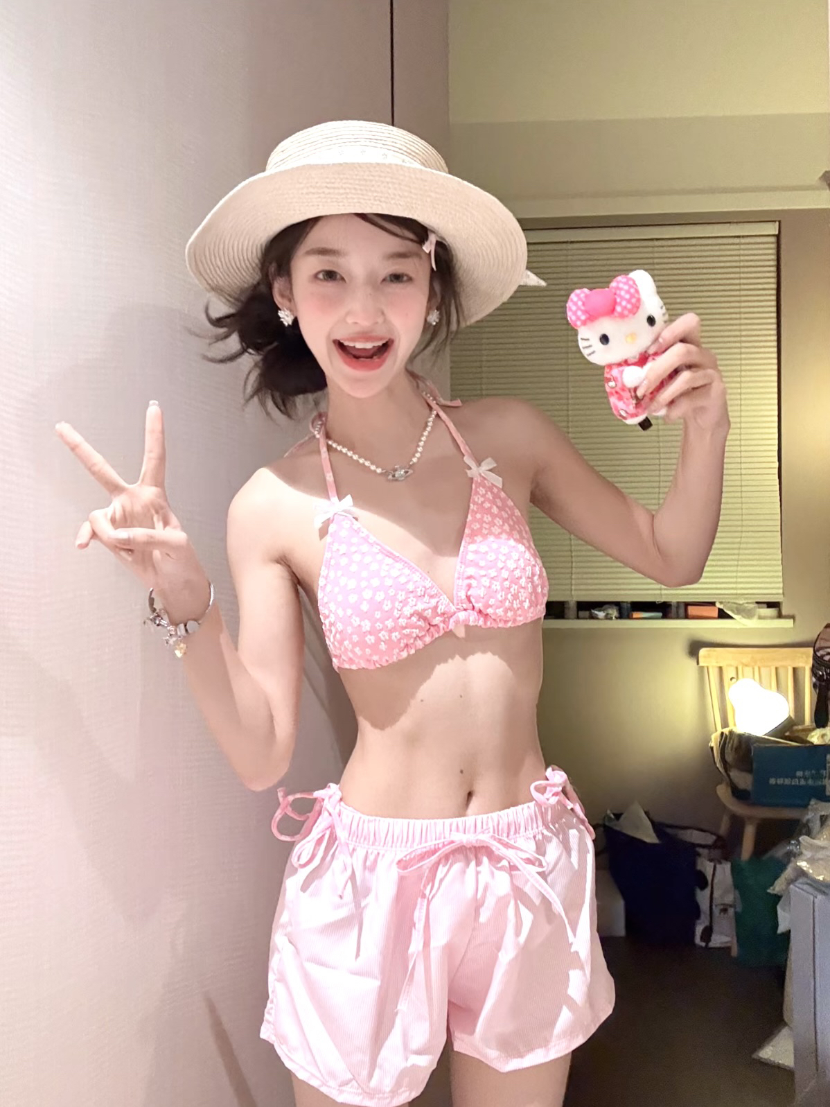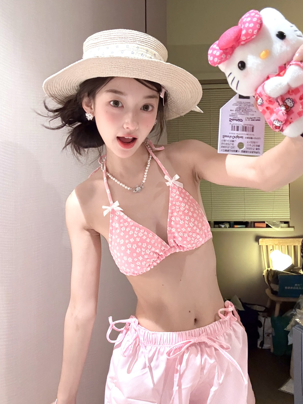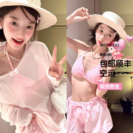 小清新碎花泰国粉色比基尼蝴蝶结罩衫短裤保守少女遮肉分体泳衣女