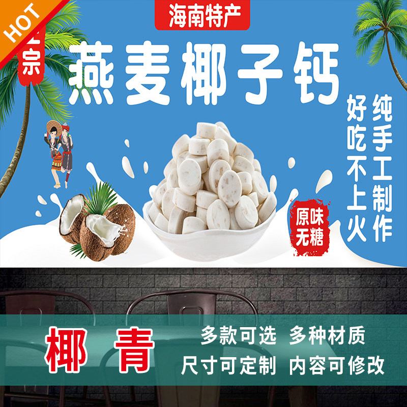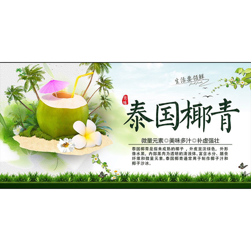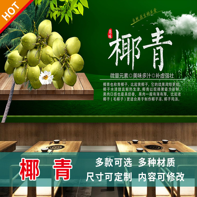 正宗冰冻椰青椰子汁海报椰子冻饮料水果茶甜品店海报贴画贴纸3384