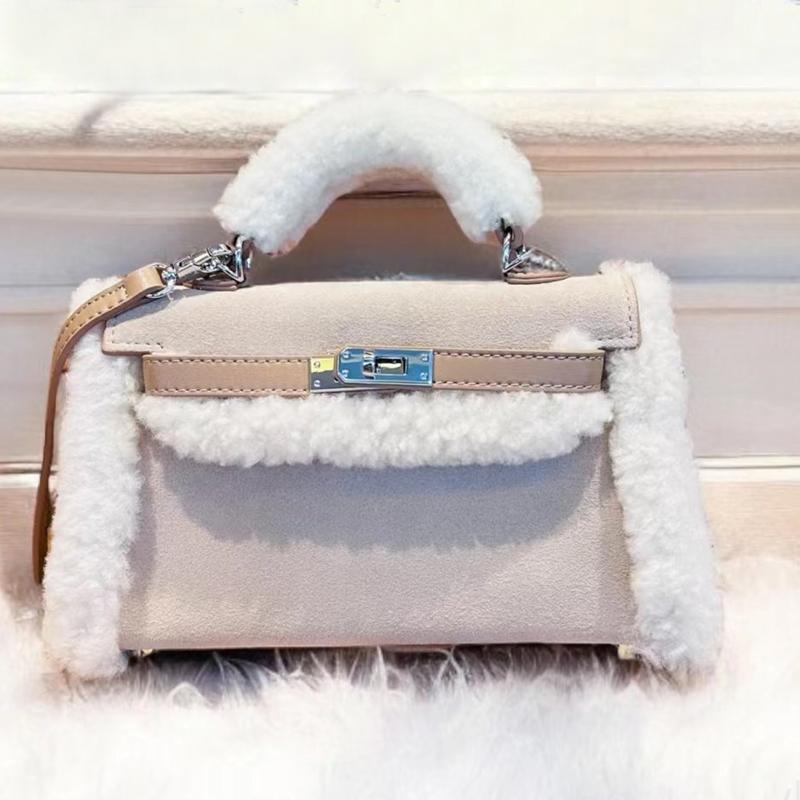 ins网红同款休闲百搭磨砂麂皮绒翻毛皮毛毛女包凯莉包小包斜挎包