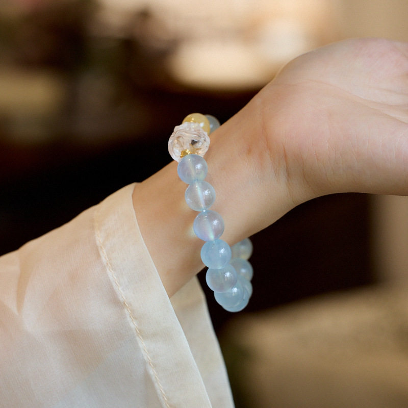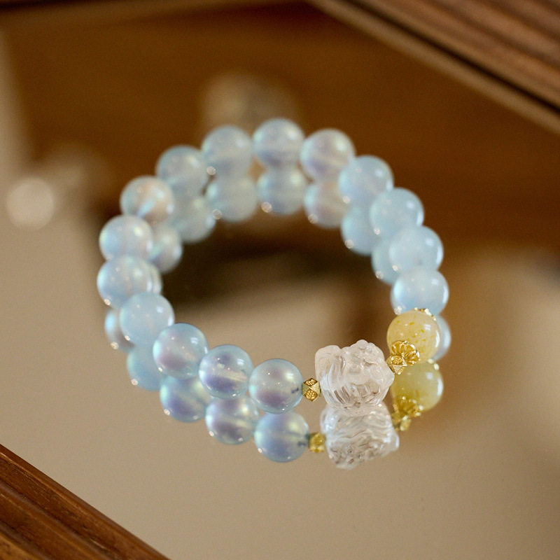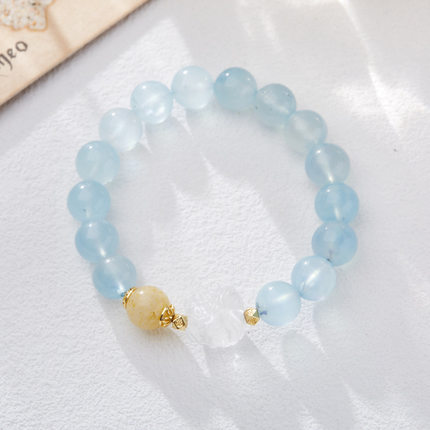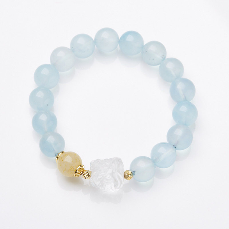 天然海蓝宝手链女白水晶国潮醒狮水晶手串高级感水晶宝石礼物