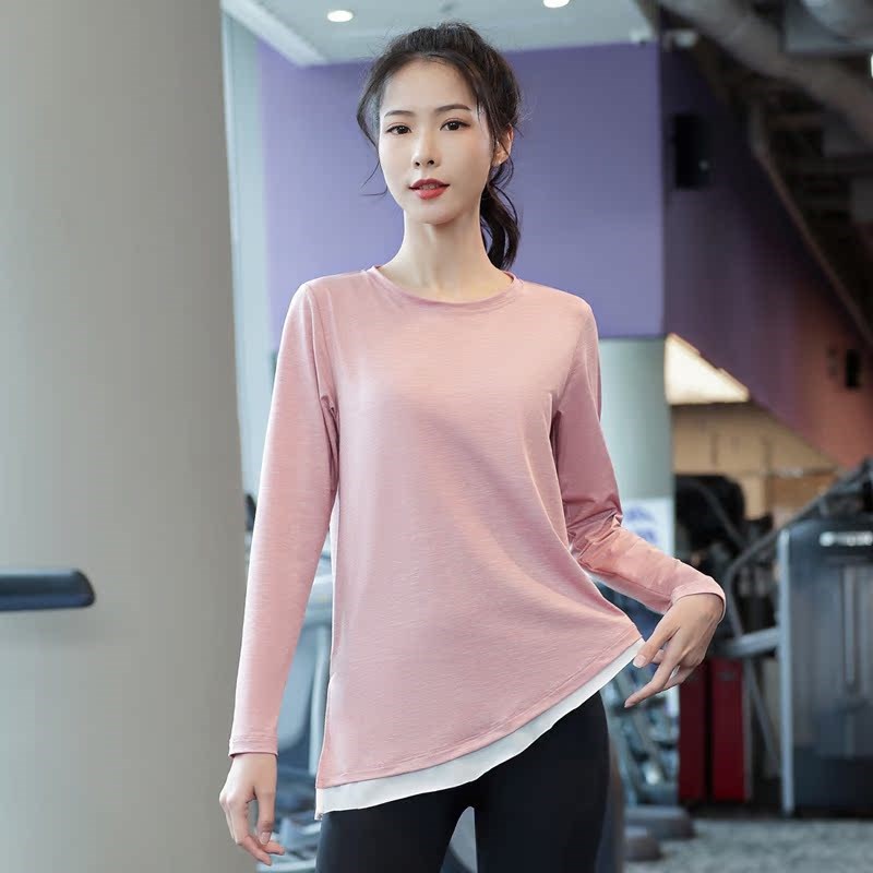 现货速发秋冬大码运动宽松健身晨练长袖速干体恤上衣瑜伽服跑步t