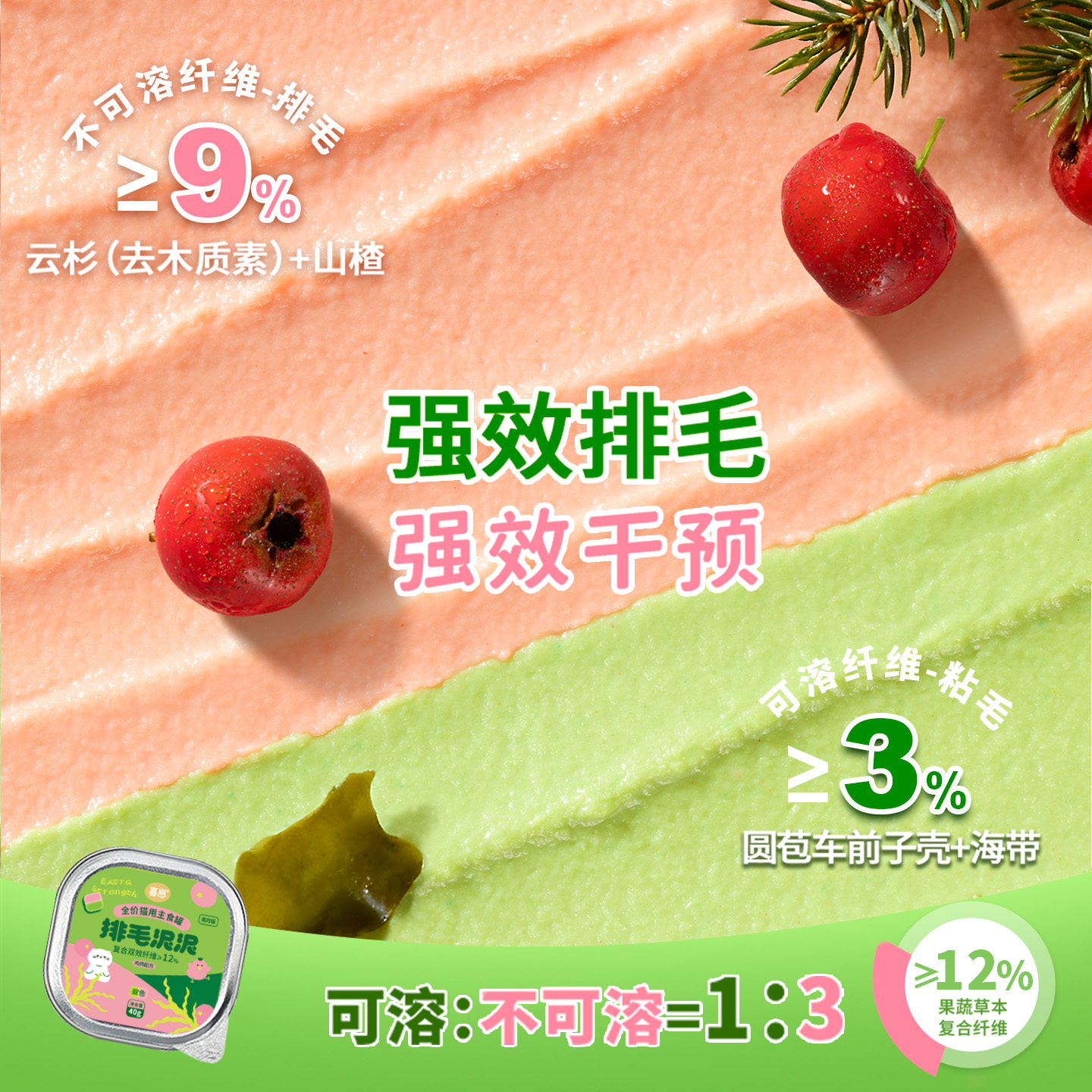 【新品尝鲜】喜崽排毛泥泥罐主食功能湿粮猫咪温和化毛呵护肠胃