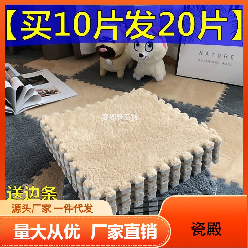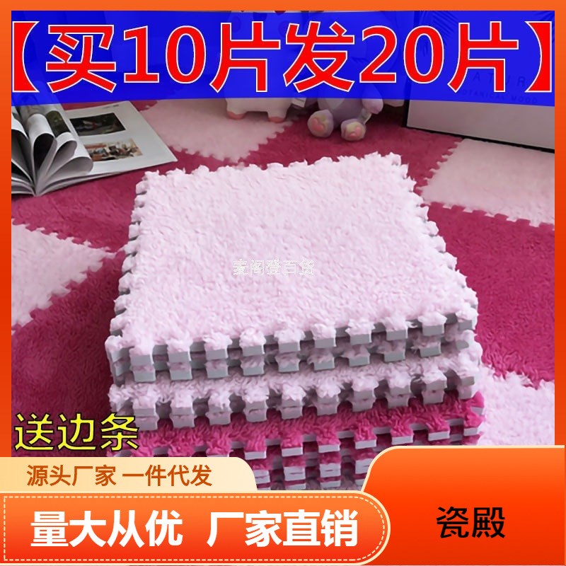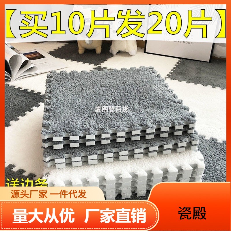 婴儿爬行垫拼接地毯卧室少女方块床边泡沫铺加厚毛绒拼图地板垫