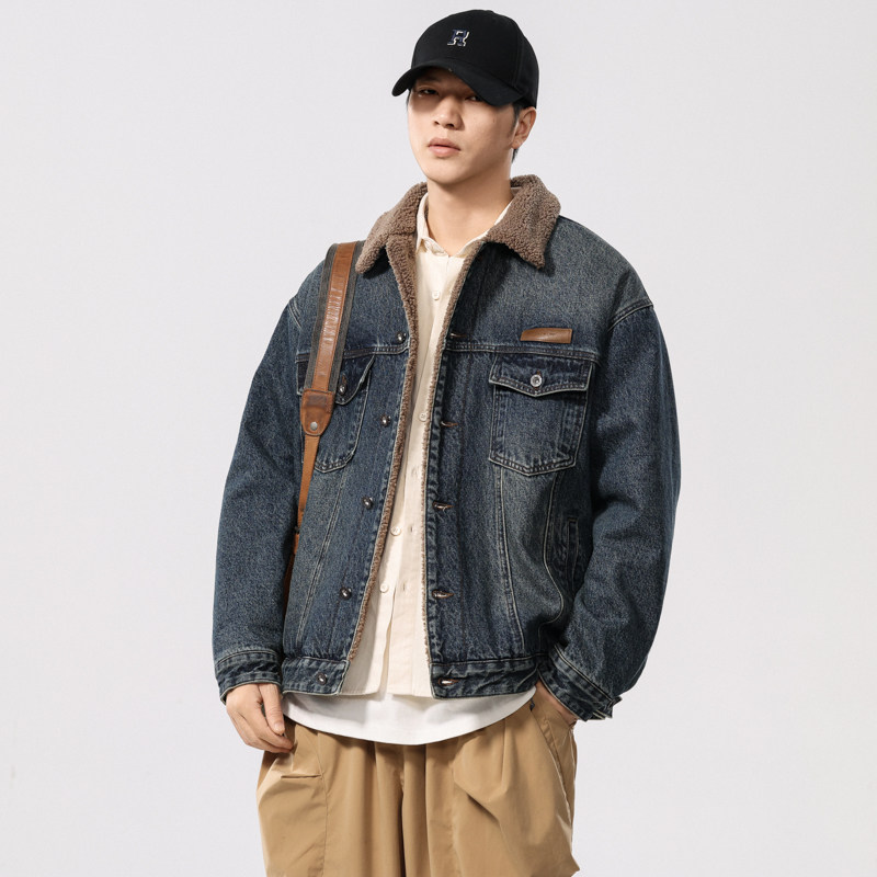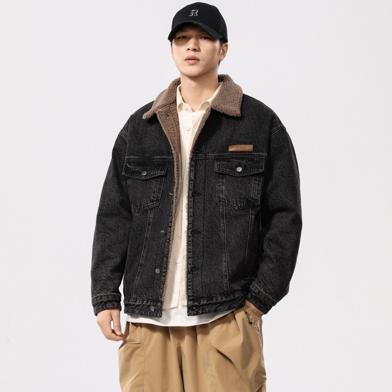美式复古加绒加厚牛仔外套男2025冬季潮牌宽松羊羔绒保暖棉服夹克