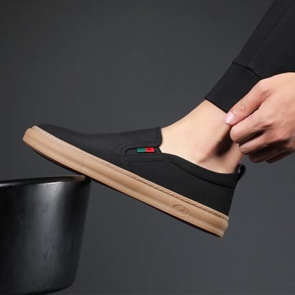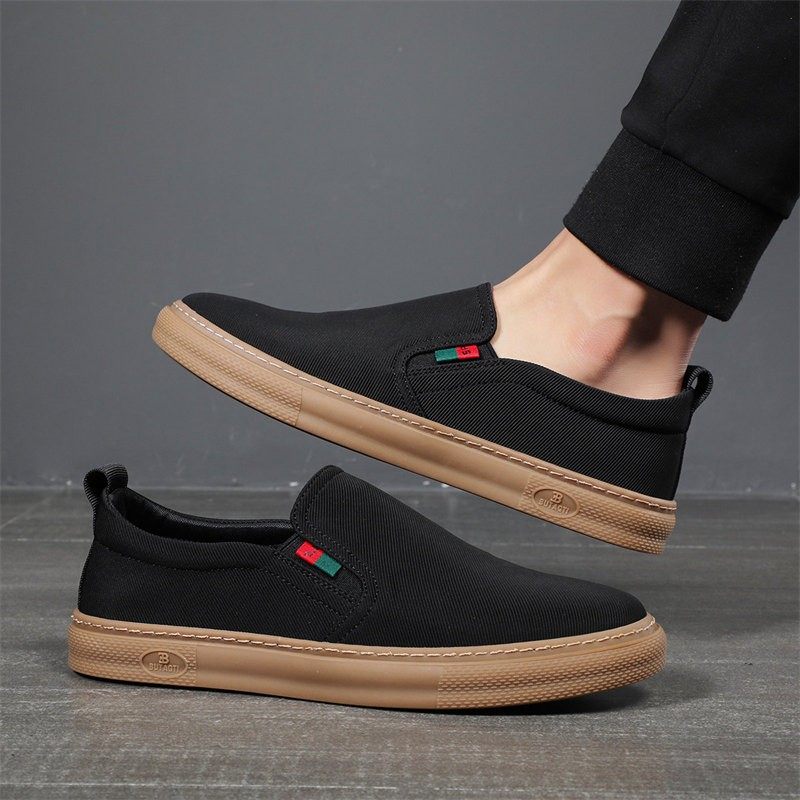 男鞋2024春夏新款帆布鞋休闲一脚蹬老北京布鞋男士懒人鞋子男款
