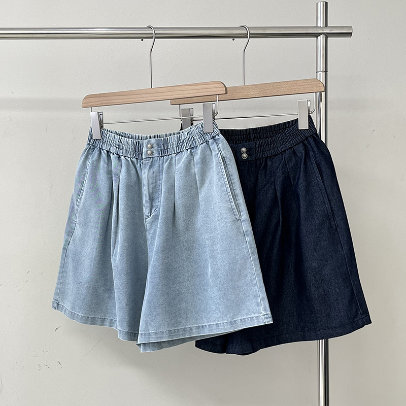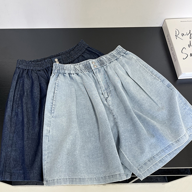 韩版休闲纯色松紧腰牛仔短裤女夏季新款A字百搭宽松显瘦阔腿热裤
