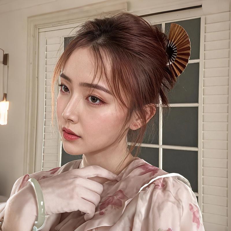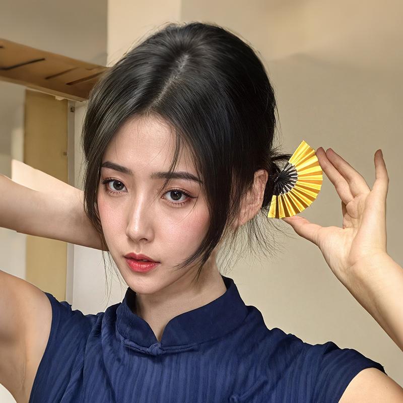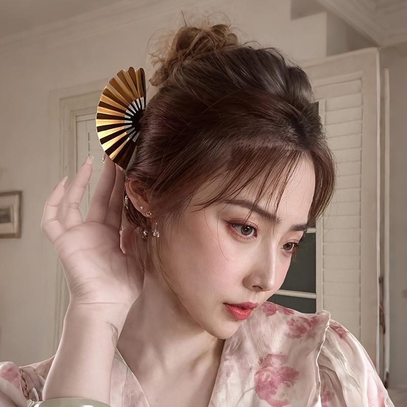 花相映扇子扇形发簪头饰小发饰新娘配饰金色簪子新中式扇子头饰