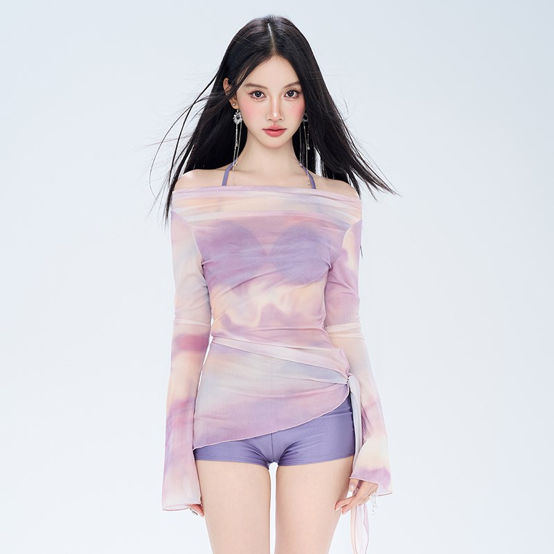 分体泳衣女士性感高级露背高腰比基尼温泉平角度假长袖泳装三件套