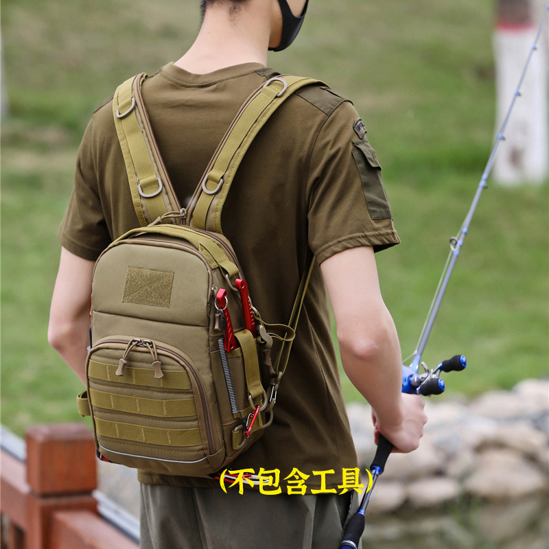 单双肩两用大容量胸包战术路亚钓鱼工具工装收纳包迷彩户外小背包