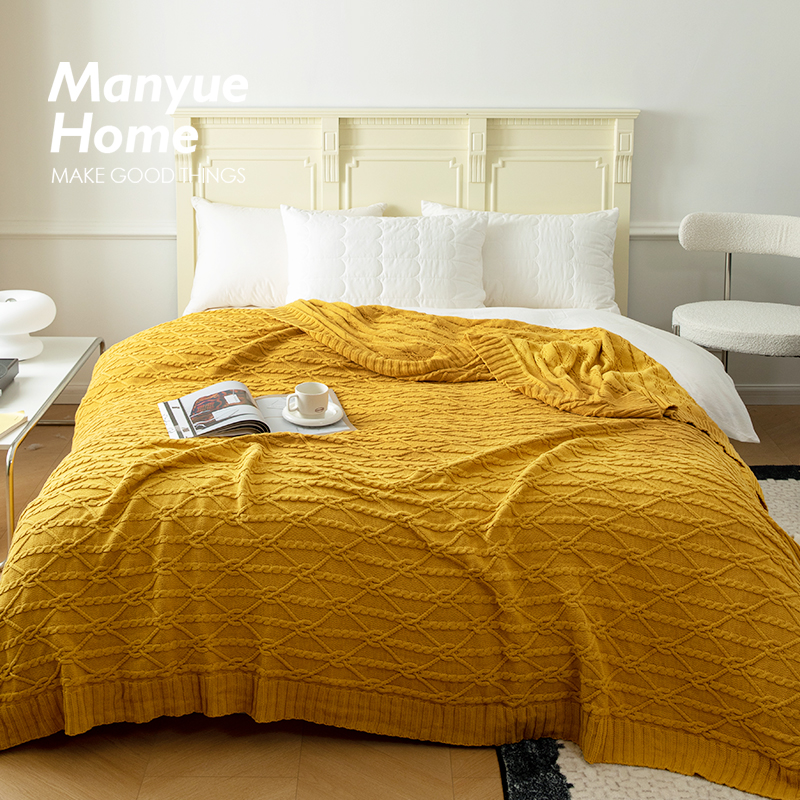 蔓越家 简约ins风全棉纯色针织盖毯四季通用沙发毯办公室午睡毯子