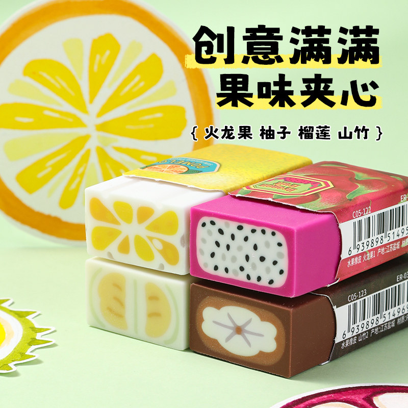 日本PLUS普乐士橡皮擦水果系列第二弹南国篇可爱卡通创意夹心擦得干净柔软少屑橡皮火龙果山竹柚子榴莲限定