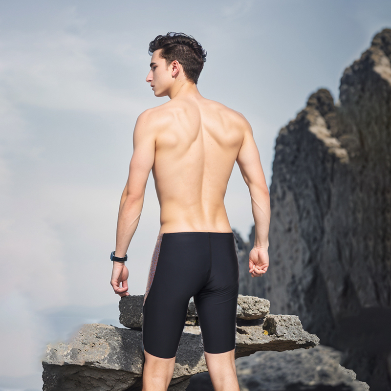 飞鱼未来新款泳裤男时尚鎏金五分速干竞速训练海边度假沙滩游泳裤