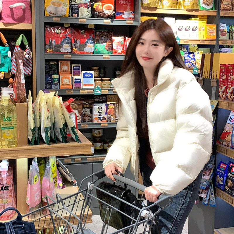 90白鸭绒立领羽绒服女短款2025冬季新款小个子面包服加厚保暖外套
