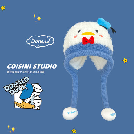 迪士尼正版授权毛绒唐老鸭套头帽女生秋冬季保暖可爱护耳雷锋帽子