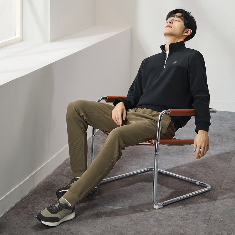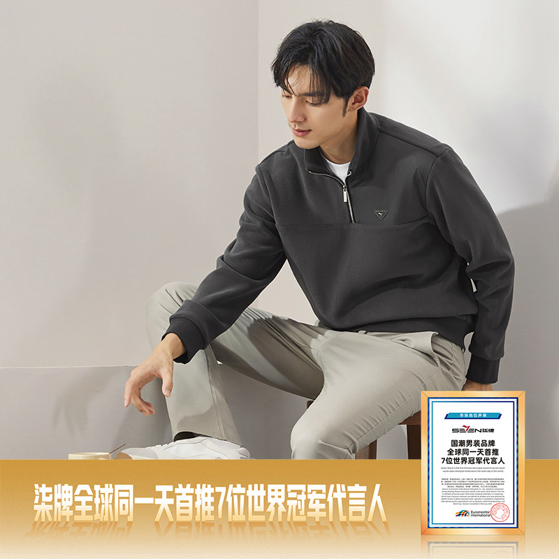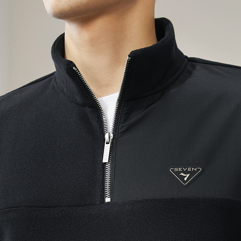 柒牌摇粒绒卫衣男士舒适新款半开立领宽松休闲中青年套头上衣