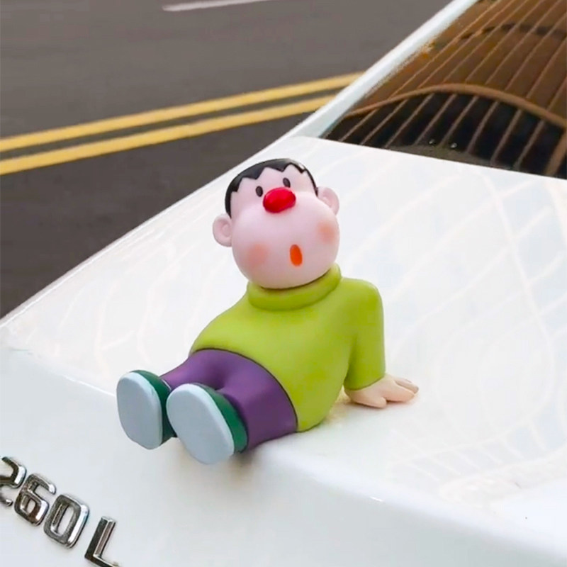 车载歪头呆萌胖虎车顶车尾创意公仔摆件可爱卡通网红玩偶汽车装饰